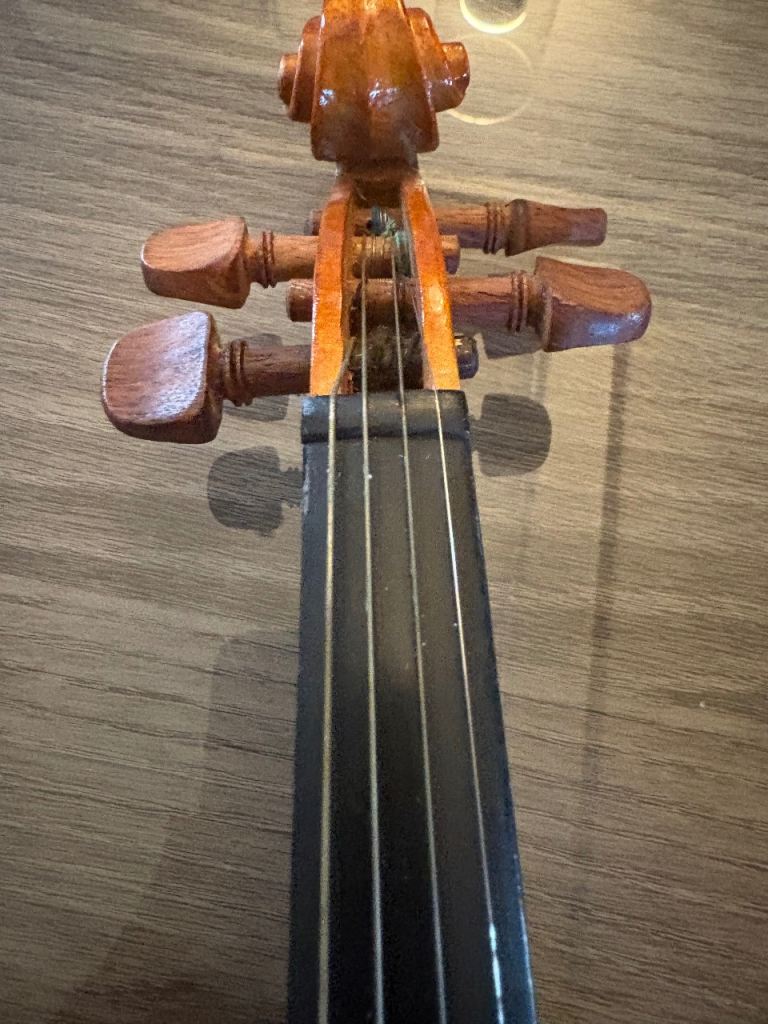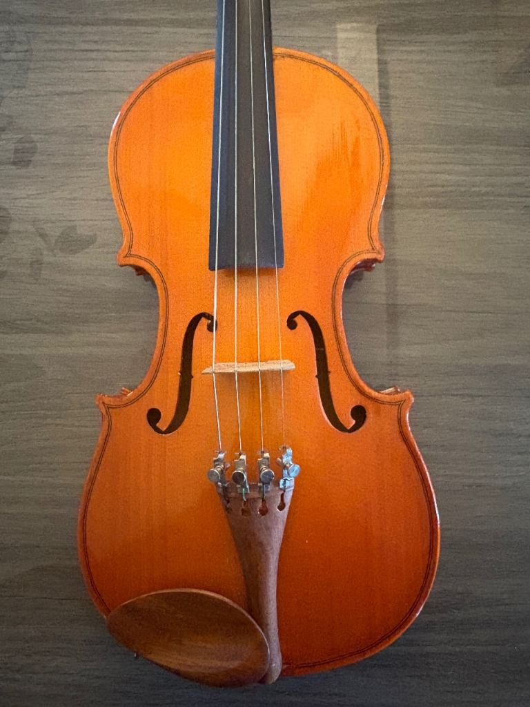 The Student 1 Violin Outfit has a solid spruce top with maple back and sides, pau rosa pegs, chin rest, tail piece and an ebonised fingerboard. I’ve fitted adjustors for easy tuning.
