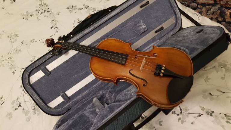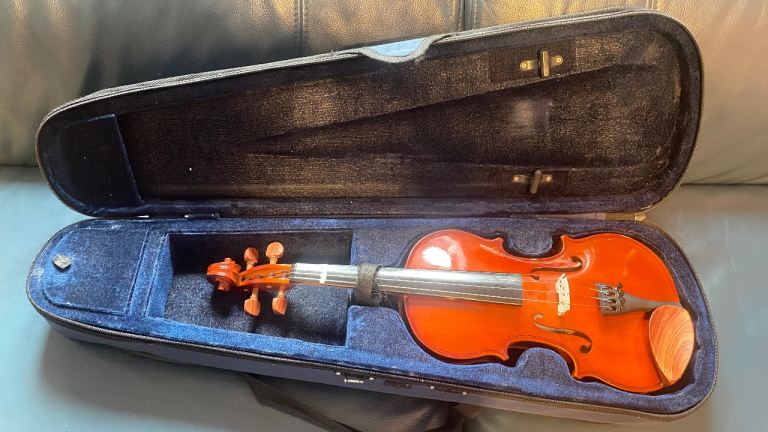 Posting for 13+ yearsCecilio Electric Solid Wood Violin Kit with Ebony Fittings in Black Metallic Varnish