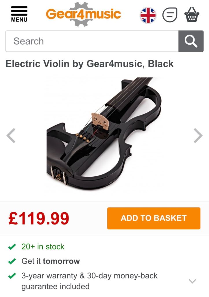Electric violin from gear4music, original price £120, as new condition full size 4/4 violin with case. Used only twice in the past year, selling for £100.