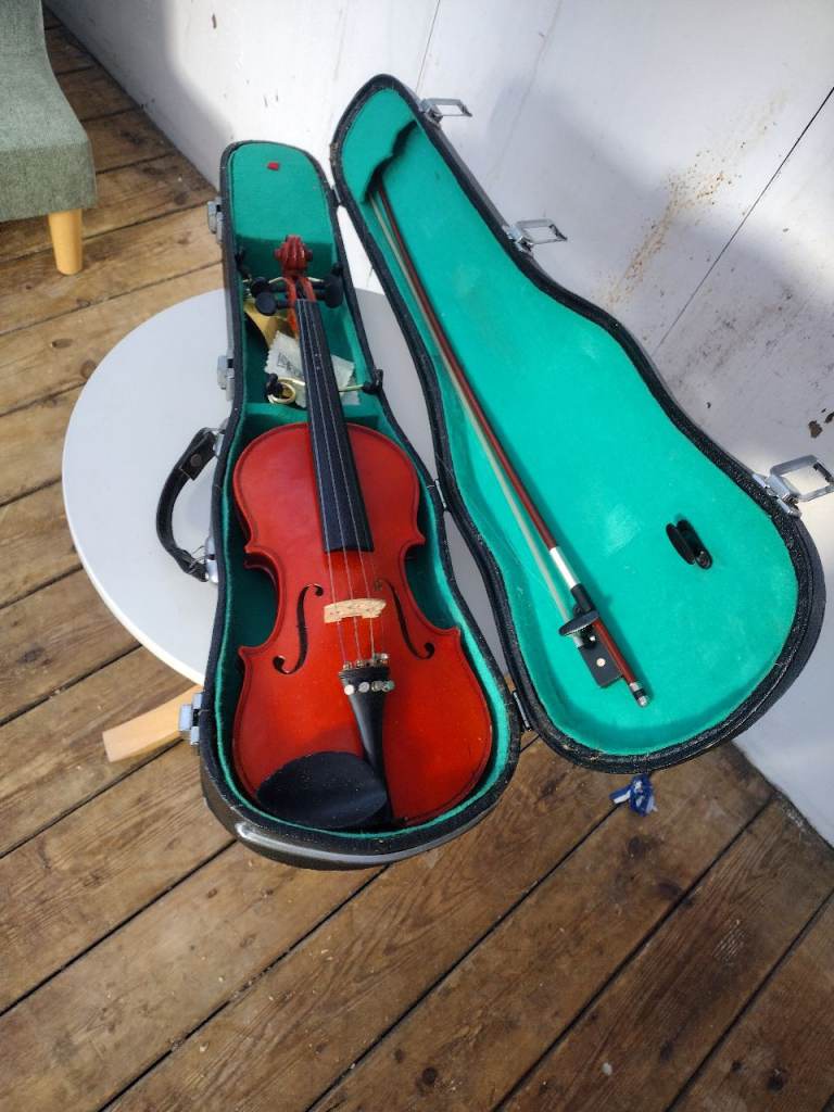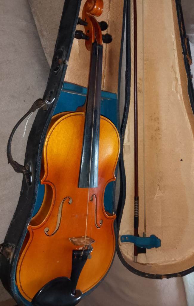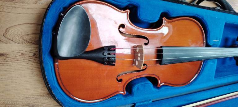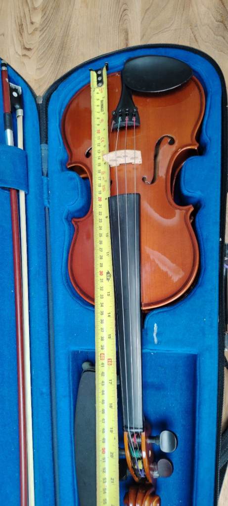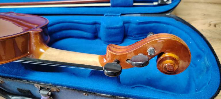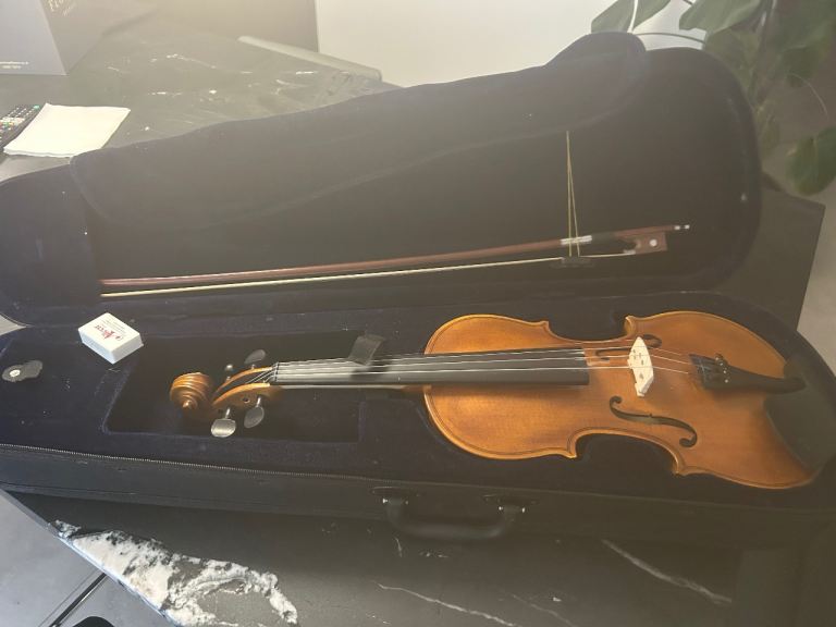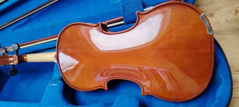 Excellent condition no damage or noticeable signs of wear. Two bows, rosin and rest included in the padded case.