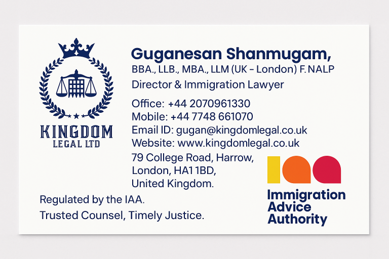Kingdom Legal Ltd is a UK-London-based immigration firm authorised by the Immigration Advice Authority (IAA), offering comprehensive immigration advice and application support for individuals, families, and businesses.