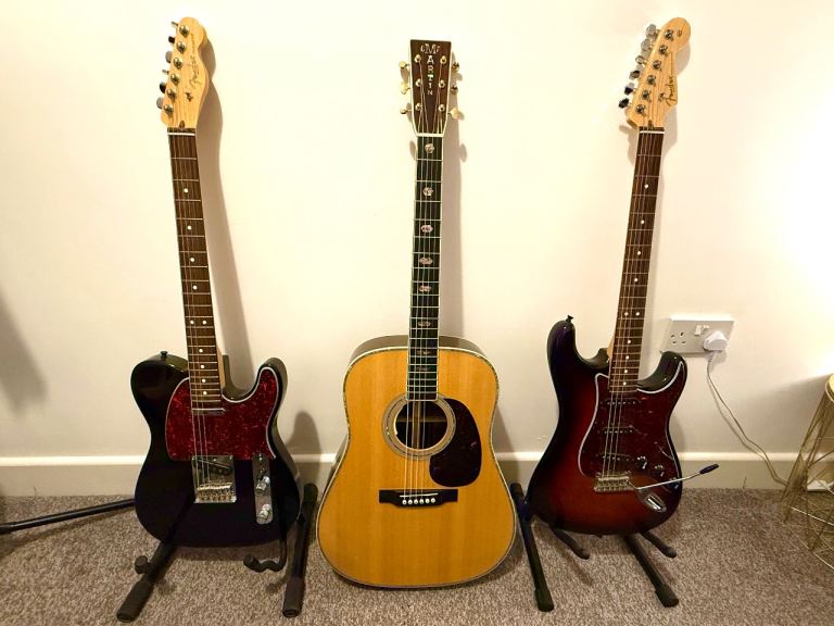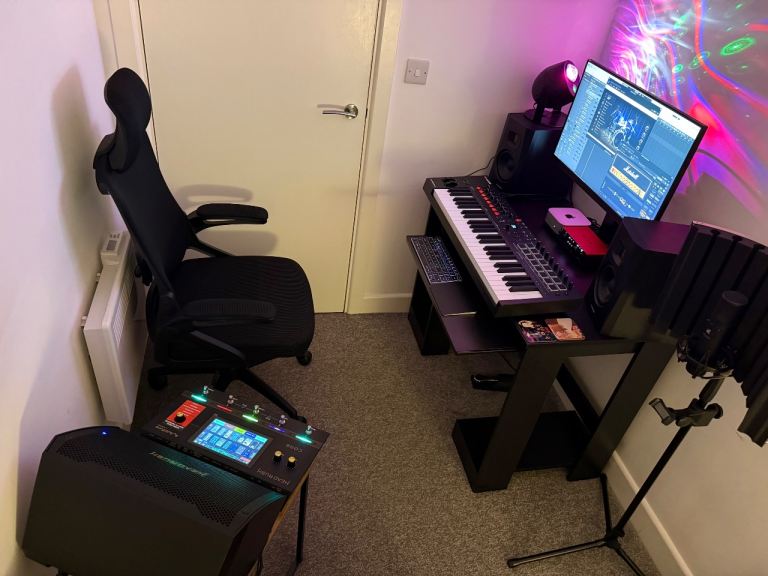 My home studio: Logic Pro, Apple Mac Mini M4, Focusrite Scarlett 2i2 4th gen interface, Adam T5V studio monitors, extensive state of the art plugins inc; virtual synths, drums, effects, M-Audio Oxygen Pro midi keyboard, various guitars - Fender electrics Stratocaster/Telecaster, Martin D41 acoustic, SE 2200 condenser mic, Headrush Core multi effects processor.