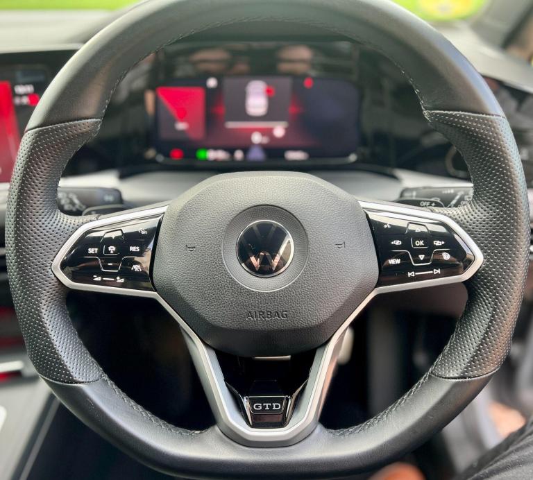 This 2022 Volkswagen Golf TDI GTD presents an exceptional opportunity with remarkably low mileage for its age, having covered just 15,443 miles. As a Euro 6 compliant model, it features a powerful 2.0 litre diesel engine, offering a blend of performance and efficiency. This GTD trim level comes equipped with a host of desirable features, including keyless entry with a start-stop button for effortless access and ignition. Stay connected and powered up with the mobile phone interface that includes wireless inductive charging, while the leather wrapped multi-function sports steering wheel, complete with heating and paddle shift, ensures a comfortable and engaging driving experience. Automatic driving lights are managed by a dusk sensor, and the Discover Navigation System with Bluetooth connectivity keeps you on track and entertained.The impressive acceleration of this Golf, achieving 0-62mph in just 7.1 seconds, demonstrates its dynamic capabilities, setting it apart from many similar vehicles. Furthermore, the generous boot space provides ample room for luggage or shopping, making it a practical choice for everyday use and longer journeys. This combination of low mileage, advanced technology, and strong performance makes this 2022 Volkswagen Golf TDI GTD a standout option.