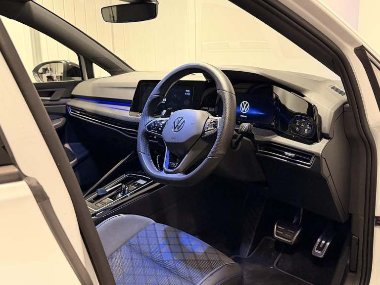 This 2023 Volkswagen Golf R, finished in crisp Pure White, is a fantastic all-round performance hatchback thats just as comfortable for daily driving as it is enjoyable on the open road.It comes well equipped with a Head-Up Display and Satellite Navigation, keeping important information clear and easy to follow while driving. Dynamic Chassis Control (DCC) lets you adjust the cars ride and handling to suit your preference, and the Winter Pack adds welcome features such as a heated steering wheel for colder days.Further highlights include automatic headlights, cruise control, Apple CarPlay, and Bluetooth, offering convenience and easy smartphone connectivity.The car is supplied with 6 months warranty for peace of mind. UK delivery is available, and finance options are available from 10.9% APR.