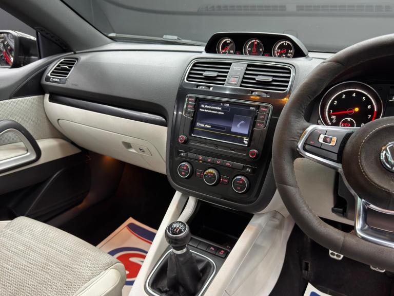 Here at Motor Gurus we are delighted to offer a Volkswagen Scirocco 1.4 TSI BlueMotion Tech GT. This vehicle is in very good condition when taking into consideration the vehicle's age and mileage. This specific vehicle is finished in a GLOSS BLACK and is contrasted by a WHITE LEATHER/SUEDE interior. This vehicle comes included with: FRONT & REAR PARKING SENSORS, PRIVACY GLASS, SLIDING GLASS PANORAMIC ROOF, HEATED SIDE MIRRORS, AUTOMATIC HEADLIGHTS, CLIMATE CONTROL, RADIO, BLUETOOTH AUDIO, TELEPHONE CONNECTIVITY, APPLE CARPLAY AND MUCH MORE! Our Volkswagen Scirocco 1.4 TSI BlueMotion Tech GT is a 1 FORMER KEEPER (2 owners) FROM NEW and will also come provided with a 12 MONTH MOT and a FRESH OIL SERVICE before it leaves our premises (OTR). MODIFIED!