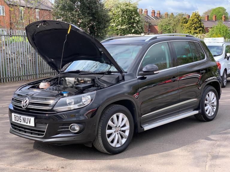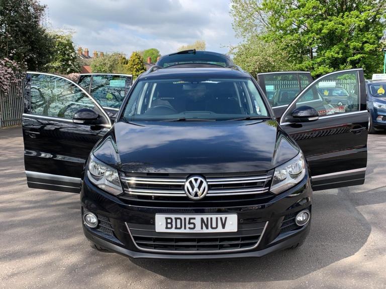 This 2015 Volkswagen Tiguan TDI Match presents an exceptional opportunity with its remarkably low mileage of just 46,278 miles, a significant advantage for its age. This one owner vehicle boasts a full service history, with the last service completed at 43,076 miles, and comes with a clear vehicle history check for your peace of mind. Equipped with a 2.0 litre diesel engine and meeting Euro 6 emissions standards, this Tiguan also features a panoramic electric sunroof, a 6.5 inch colour touch screen with satellite navigation, ABS Plus anti-lock braking system, a tyre pressure loss indicator, and 4x20 Watt sound output. You can drive away with confidence knowing this Tiguan comes with a 3 month warranty and a 12 month MOT provided on purchase. Its appeal is further enhanced by its excellent fuel economy, achieving an impressive 57 miles per gallon, which highlights its efficiency compared to similar vehicles. Additionally, its low CO2 emissions and low insurance group rating demonstrate its cost effectiveness, making it a sensible choice for many drivers.Supplied with a long MOT and a 3 months/3,000 miles parts and labour warranty. Usual dealer facilities available including part exchange service, low cost finance plans and extended mechanical warranties.