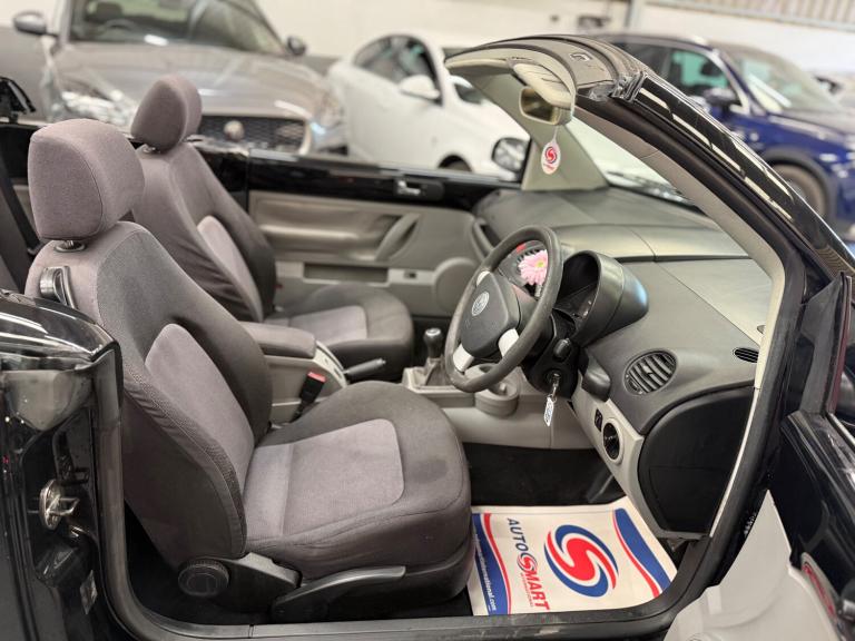 This VW Beetle 1.6 petrol has 6 former keepers and comes with 10 services- last serviced at 144k , Long Mot , Cam belt done at 131k , 2 keys Full working electric hood , 4 electric Windows , 16'' alloys Part exchange to clear Features Include: , 16in steel wheels, 16in steel wheels with full wheel covers, cloth hood- black, electric hood, full size wheel trims, electric headlight height adjuster, front centre armrest & storage
