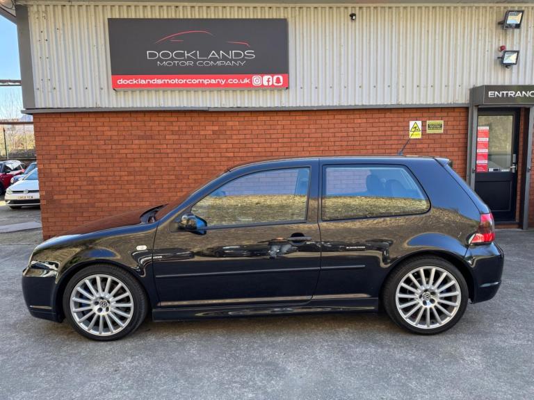 Docklands Motor Company Are Pleased To Present This Future classic, Volkswagen Golf MK4 R32 Finished In Metallic Diamond Black Pearl With Full Black Heated Leather Interior, This is a non abused example with no expenses spared! Full service history with plenty of invoices, bills & receipts. Xenon Headlamps, CD Changer, Heated Seats, Electric Windows, Electric Mirrors, Air Con, CD Player, Remote Central Locking, This is a exceptional example in fantastic condition must be seen to be appreciated. All our vehicles are fully HPI checked, OUT OF HOURS CALL US ON 07518 483543, Every endeavour is made to ensure specifications and descriptions are correct. Due to model changes, sometimes specifications may vary. Please contact us to confirm the specification,
