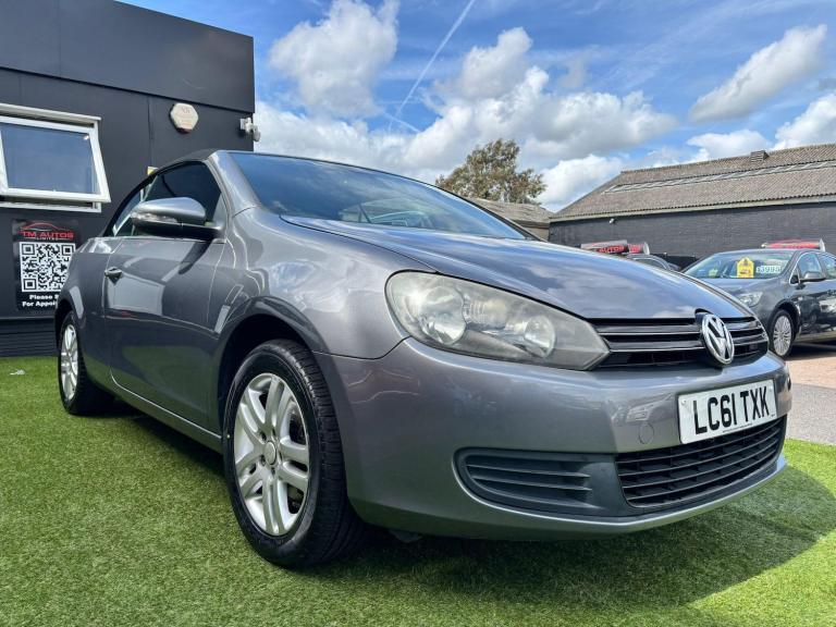 This vehicle is in an excellent condition, interior & bodywork!! A great spec including electric roof & windows / cruise & climate control, air conditioning & alloy wheels, remote central locking.. Full 12 Month MOT!! Full 12 Month AA Breakdown Cover!! 3 Month Warranty included!! Full HPI Certificate!! Service Record!! A Fantastic Vw Golf Cabriolet with a 1.2 TSI engine, great for fuel economy & low insurance!! Just in time for the sun, the first to see will buy!! Features Include: , 12v socket, 16in alloy wheels - atlanta, abs - anti-lock braking system, asr - anti slip regulation, active rollover protection system, air conditioning - climatic semi-automatic control, airbags - driver, airbags - drivers knee, airbags - front passenger, airbags - front passenger with deactivation switch, airbags - front seat side impact, alarm with interior protection, aux-in socket, bluetooth telephone preparation, body coloured bumpers, body coloured door handles, body-coloured door mirrors with integrated indicators, central locking - remote with 2 remote keys, cup holders - front x2, dab+ - digital radio reception, differential lock - electronic, door mirrors - electrically adjustable and heated, dust and pollen filter, esp - electronic stability programme, electric windows - front, electric windows - front and rear, electronic engine immobiliser, exterior temperature gauge, fully automatic electric power hood, glovebox - cooled and lockable, hba - hydraulic brake assist, head restraints - front whiplash optimised, heated rear windscreen, height and reach adjustable steering wheel, hill hold assist, isofix child seat preparation, multifunction computer - highline, power assisted steering - speed sensitive, rcd 310 radio - mp3 compatible cd player, seats - easy entry sliding front, seats - front comfort, seats - height adjustment - front, seats - split folding rear backrests 50-50, spare wheel - space saver steel, speakers x6, steering wheel - leather trimmed & gear knob & handbrake grip, tcs - traction control system, tinted glass - heat insulating