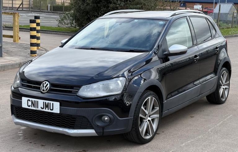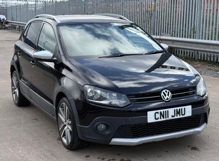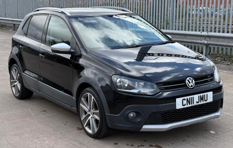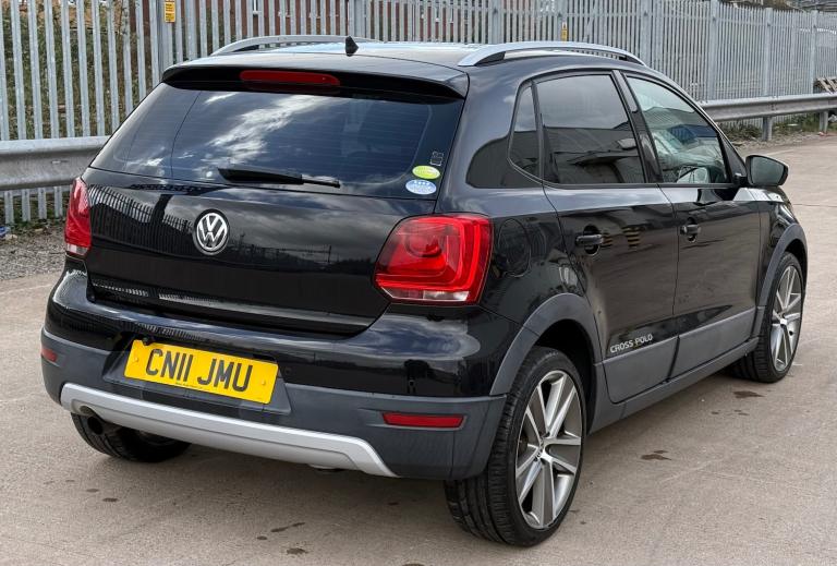 VW Polo Cross, a 2011 reg, finished in metallic deep black pearl, with an impressive specification including, 1 UK Owner, Genuine low miles, daytime running lights, beautiful alloy wheels, roof rails, rear privacy glass, cross polo embroidered seats, central locking, all auto windows, electric heated adjustable and folding door mirrors, 2 keys, reverse camera, air conditioning, digital air conditioning display, bluetooth, DSG gearbox, 2v port, centre arm rest, leather multifunctional steering wheel, cruise control, paddle shifts, service and inspection available, warranty and finance available, p/x welcome