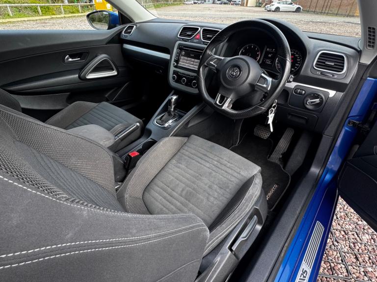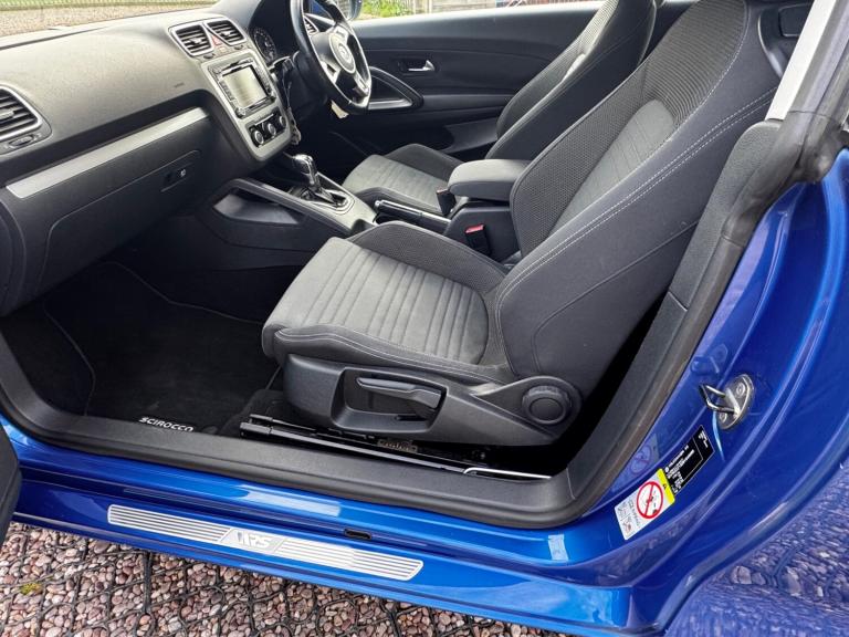 Lovely Example of the VW Scirocco 1.4 TSI DSG Petrol Coupe, featuring a semi-automatic 7-speed gearbox, finished in Electric Blue with a Black Sports Interior. Very Low Mileage. Full Service History, last serviced @54004 miles on 1/7/2025. Touch Screen Entertainment System, Premium 8 Speaker Sound System, Media & Phone Connectivity, Rear Parking Sensors with On-Screen Display. Phone Preparation, Electric Windows, Electric Door Mirrors, Heated. Adjustable Suspension Settings, Air Conditioning, 18inch Interlago Alloy Wheels with Very Good Tyre's all Round, Recent New Brakes, Flat Bottom Leather Steering Wheel, 2 Remote Keys, Premium Sound System, Drives Lovely, Smooth Gearbox, Powerful, 160 bhp, yet Economical Engine, Galvanised Body, In Very Good Condition and Working Order, Space Saver Spare Wheel. Viewings by Appointment only; 3-month Premium Autoguard Warranty included. Available 7 Days A Week.