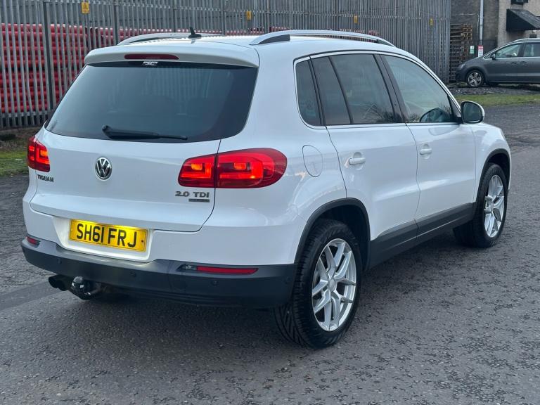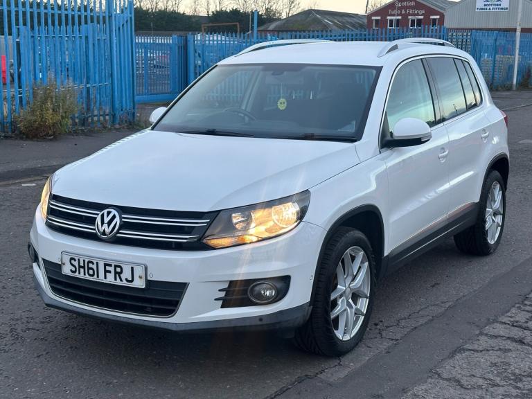 , (61) VOLKSWAGEN TIGUAN 2.0 TDi BlueMotion Tech Sport 5dr [2WD] , mot - November 2026, 3 month warranty , FINANCE AVAILABLE , LOOKS AND DRIVES LIKE A NEW CAR , stunning condition , drives great , only 117,000 miles from new guaranteed , full service history with 10 stamps (ROAD TAX 200 POUNDS A YEAR) , nationwide delivery available , part ex welcome , includes 3 months warranty covered by HANDLER PROTECT , alloy wheels with 4 very good tyres , electric front and rear windows , electric folding mirrors , radio/cd player , metallic paint , remote central locking , spare remote key , height adjustable driver seats , multifunctional steering wheel , driver passenger air bags ,rear folding seats , steering wheel rake adjustment , all ours cars are fully valeted , good condition inside and outside, ...excellent driver ( E-MAIL WILL NOT BE REPLIED TO ) , Dalmarnock motor company , 5 Downiebrae road , Rutherglen , G73 1PW , black gates next to the blue little cafe , WE ARE ACROSS THE ROAD FROM SCOTTISH TUBES & FITTINGS , street opposite McDonalds on Dalmarnock road , please let me know 30 minutes before you coming thanks , open till 8pm 7 days VIEWING BY APPOINTMENT ONLY , only £4995.. ..any inspections welcome.. part exchange welcome