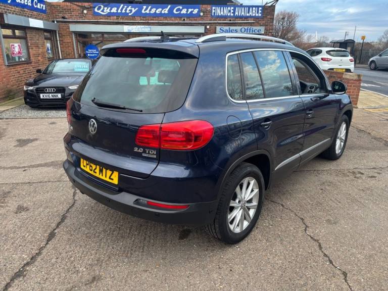 9 servcie stamps DAB radio p/sensors Bluetooth This 2012 Volkswagen Tiguan TDI SE offers peace of mind with a clear vehicle history check. This well maintained example features a 2.0 litre diesel engine and SE trim, providing a blend of efficiency and practicality. For your convenience, it comes equipped with front and rear parking sensors, along with Park Assist to make manoeuvring effortless. Inside, you will find 2 zone electronic climate control for personalised comfort and Bluetooth telephone preparation for seamless connectivity on the go. This Tiguan stands out with its impressive fuel economy, achieving up to 53 miles per gallon, which indicates it is more economical than many similar vehicles. Furthermore, its low insurance group and low CO2 emissions suggest that running costs are kept to a minimum, making it a sensible choice for everyday driving..12V Socket - Centre Console, 12V Socket - Luggage Compartment, 17in Alloy Wheels - Philadelphia, 18 Degree Front Module, 2 Zone Electronic Climate Control with Automatic Air Recirculation, 6CD Autochanger - Dash Mounted, ABS - Anti-Lock Braking System, ASR - Anti Slip Regulation, Air Vent Surrounds - Steel Finish, Airbags - Curtain, Airbags - Driver, Airbags - Front Passenger, Airbags - Front Passenger with Deactivation Switch, Airbags - Front Seat Side Impact, Alarm with Interior Protection, Anti-Theft Wheel Bolts, Armrest - Front Centre with Storage Compartment, Automatic Dimming Rear View Mirror, Bluetooth Telephone Preparation, Body Coloured Bumpers and Door Handles, Body-Coloured Door Mirrors with Integrated Indicators, Central Locking - Remote with 2 Remote Keys, Chrome Trimmed Front Air Intake Grille Surround, Cup Holders - Front x2 Rear x1, Cup Holders - Rear x2, Dashboard and Centre Console - Anthracite Metallic, Differential Lock - Electronic, Door Mirrors - Electrically Adjustable and Heated, Driver Alert System, EBD - Electronic Brake Pressure Distribution, ESP - Electronic Stability Programme, Electric Windows - Front and Rear, Electronic Engine Immobiliser, Electronic Parking Brake with Auto Hold Function, Flat Tyre Indicator, Folding Front Seat Backrest, Folding Table on Back of Front Seats, Footwell Illumination - Front, Front Fog Lights with Cornering Lights, Front Seat Back Storage Pockets, Front Sports Seats, Glovebox - Cooled and Lockable, Head Restraints - Front Whiplash Optimised, Headlights - Coming-Leaving Home Function, Headlights - Dusk Sensor - Automatic Driving Lights, Headlights - Dusk Sensor with Coming-Leaving Home Function, Headlights - Halogen Clear - Range Adjustable, Heated Rear Window, Height and Reach Adjustable Steering Column, High Level 3rd Brake Light, ISOFIX Child Seat Preparation for 2 Rear Seats, Instrument Lighting - White Adjustable Panel Illumination, Interior Light Delay, Lights on Warning Buzzer, Load-Through Provision, Luggage Compartment Cover - Removable, Luggage Compartment Light, Luggage Compatrment - Load Lashing Points x5, MDI - Multi Device Interface with USB - iPod Connection Cables, Multifunction Computer, Park Assist including Parking Sensors Front and Rear, Parking Sensors - Front, Parking Sensors - Rear, Power Assisted Steering - Speed Sensitive, RCD 510 Touch Screen DAB Radio System, Radiator Grille - Black with Chrome Louvres, Rain Sensor, Reading Lights - Front x2, Rear Wash Wipe with Intermi