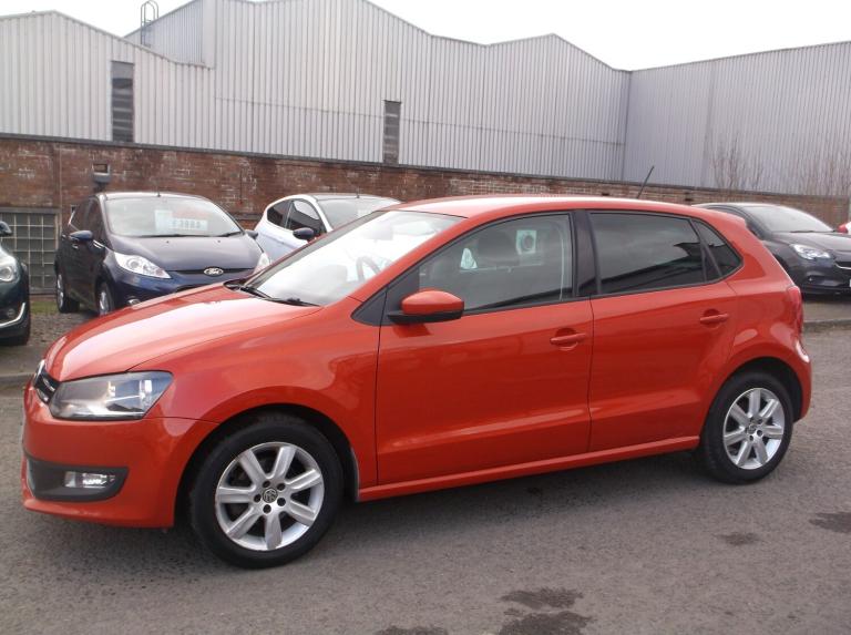 2013 / 13 plate VW polo 1.4 Match 5 door, in very good condition finished in metallic orange and having covered only 85,850 miles with good service history (7 STAMPS) Timing belt renewed.... ........ Runs and drives very well and will come with a new 12 month MOT, full service prior to collection and 3 months warranty at screen price. Warranty can be upgraded to an Auto Protect warranty for up to 2 years at further cost if required............ Comes well equipped including daytime running lights, alloy wheels, front fog / driving lights, reverse parking sensors, 5 speed manual transmission, power steering, cruise control, electric front and rear windows, electric mirrors, remote central locking, CD radio 12V, and Aux. sockets, VW media system with blue tooth phone connectivity, cup holders, fully adjustable steering column (rake and reach), height adjustable driver and passenger seat, multiple airbags, front and rear head rests, 3 x 3 point rear seat belts, split folding rear seats, Isofix points, rear load cover, heated rear screen and rear wash / wipe etc ........... NATION WIDE DELIVERY AVAILABLE ............... For more information contact us via email or phone ............... FINANCE AVAILABLE -- APPLY ONLINE AT CARMONEY.
