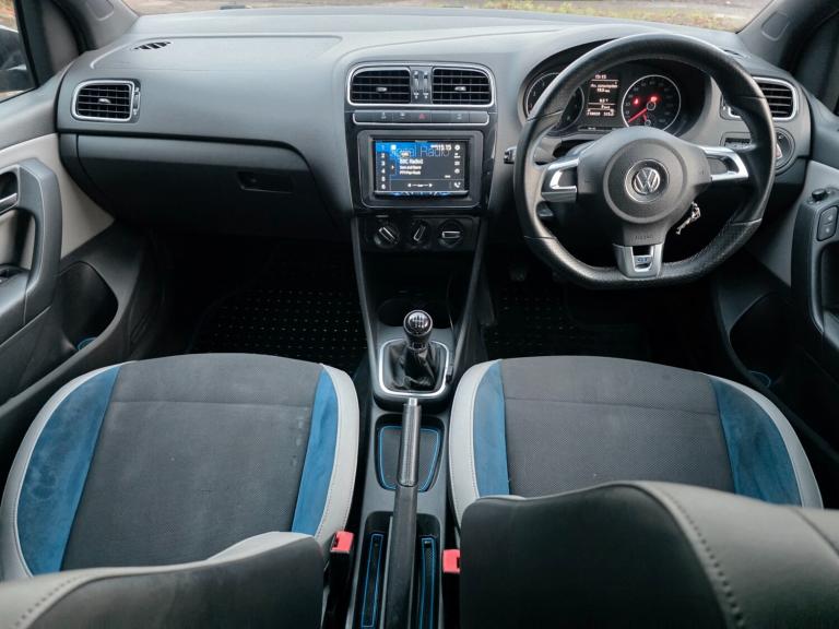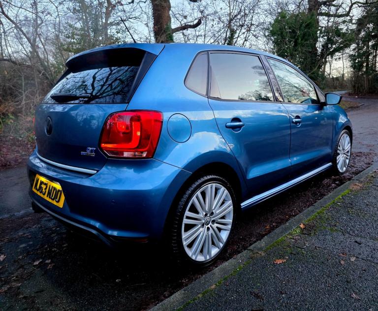 Volkswagen Polo BlueGT1.4 tsi petrol Manual offering a strong specification, comprehensive service history and very low running costs, used by previous owner as a ""motorway mucher"". Volkswagen Polo BlueGT 1.4 TSI ACT Manual, 2013, 118600 miles. The car drives very well and benefits from 12 recorded services.It has just been serviced and comes with a long MOT valid until 12/12/2026. All minor MOT advisories, have been fully addressed, we have also just had the tracking done as well and a NEW thermostat and waterpump fitted. Only 3 owners from new, HPI clear, and supplied with 2 keys. Annual road tax is just £20, making it very economical to run.Fitted with an aftermarket PIONEER TOUCHSCREEN infotainment system with Bluetooth phone and media connectivity and DAB radio, along with REAR PARKING SENSORS, AIR CONDITIONING, alloy wheels and electric windows, COOLED glove box, Few stonechips but overall very tidy car for year. Viewings and test drives welcome, by appointment only.