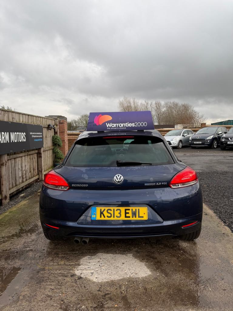 2013 VOLKSWAGEN SCIROCCO 2.0GT TDI TECH BLUEMOTION 140BHPHPI CLEAR 164K GENUINE MILES4 OWNERS FROM NEWPART SERVICE HISTORY JANUARY 2027 MOT£35 YEAR ROAD TAX HEATED SEATS LEATHER SEATS SAT NAVIGATION AUTO LIGHTS CLEAN CAR INSIDE/OUTRUNS AND DRIVES PERFECT £29993 MONTHS WARRANTY INCLUDED AT ASKING PRICE ALL MAJOR CREDIT AND DEBIT CARDS ACCEPTED DELIVERY CAN BE ARRANGED AT A FEE ONCE ALL FUNDS ARE CLEARED LOCATED SHOTTON COLLIERY FLEMING FIELD DH6 2JQPLEASE MESSAGE OR CALL BEFORE COMING TO VIEW