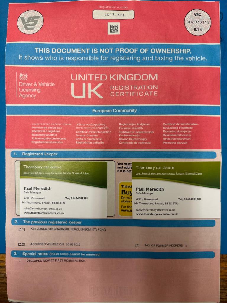 - Original number plateAdvisoryDifferent number plates are commonplace. Ensure the number plates on the car match the V5C documentation. Be sure of what number plate comes with the car you are buying.