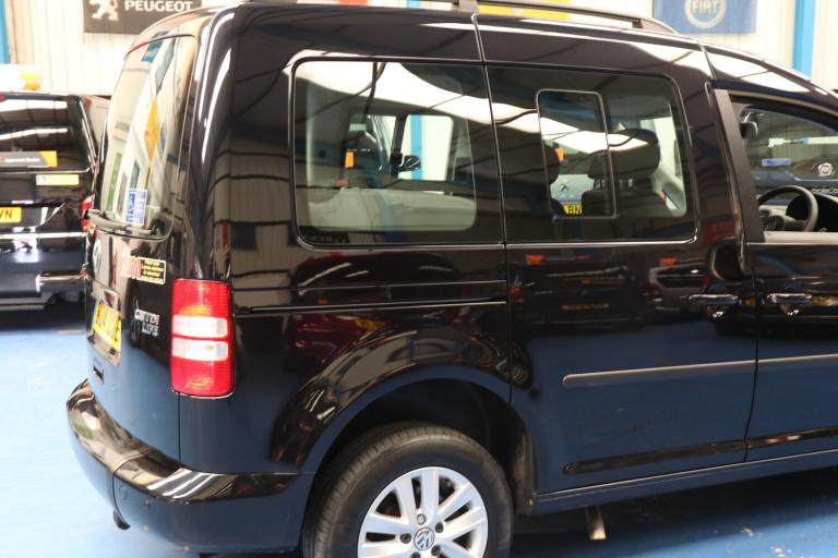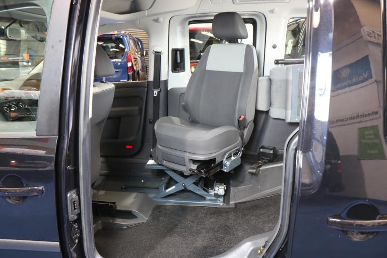 VW Caddy Transfer car, This car has a remote power tailgate and ramp and a 6 way swivel driver seat, this will give a wheelchair user independence, the disabled person can enter the car, transfer to the driver's seat without walking round the car, very nice car, Please call The Wheelchair Car Group 9am-8pm any day including weekends on 0161 793 5934 (Stock Ref BG14UUE).