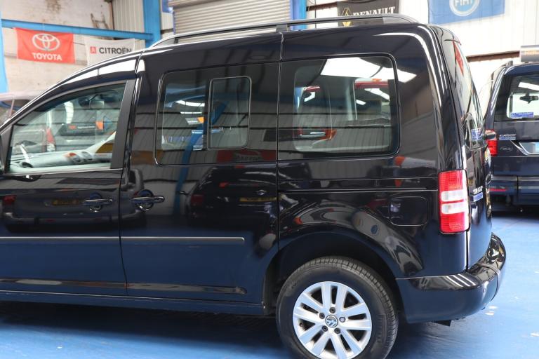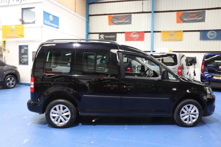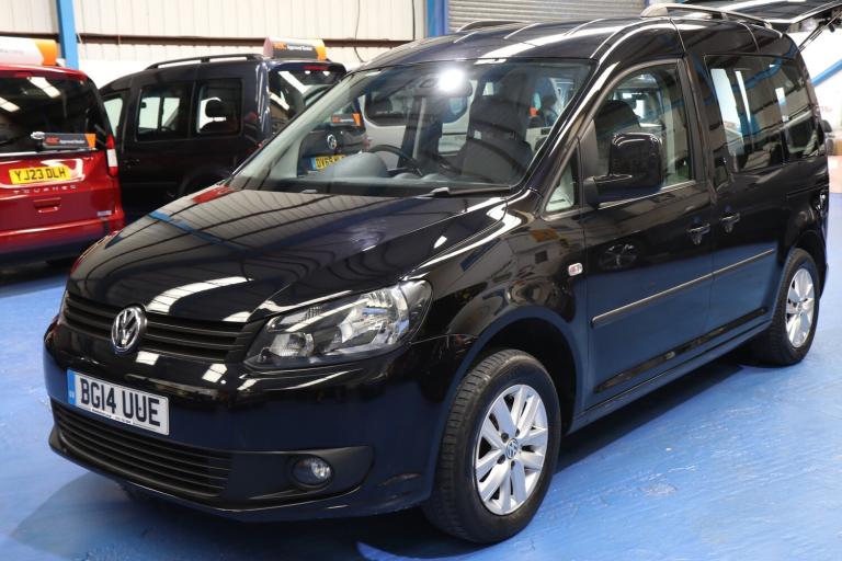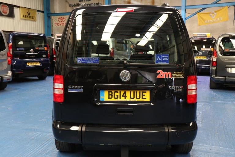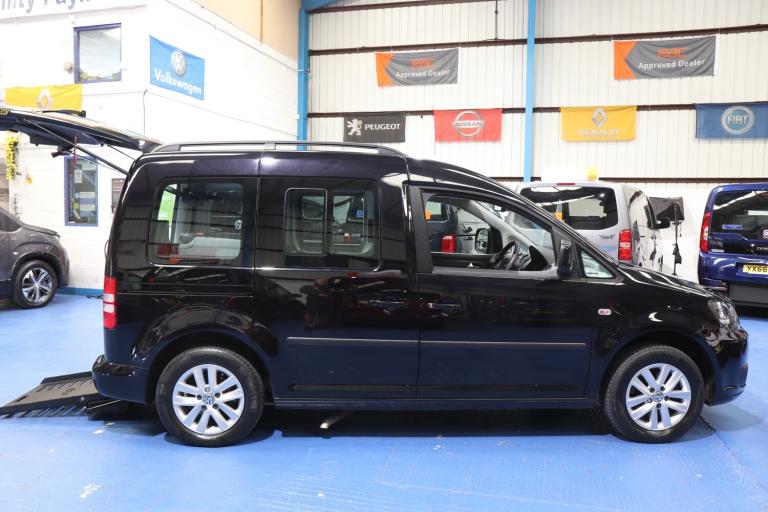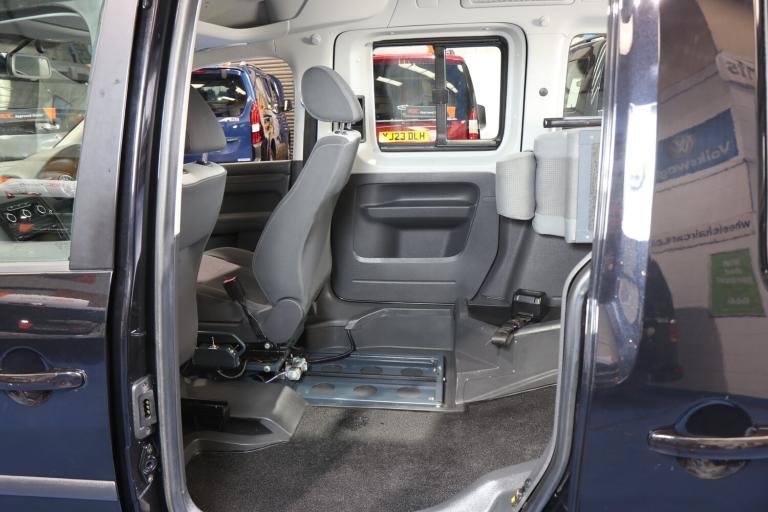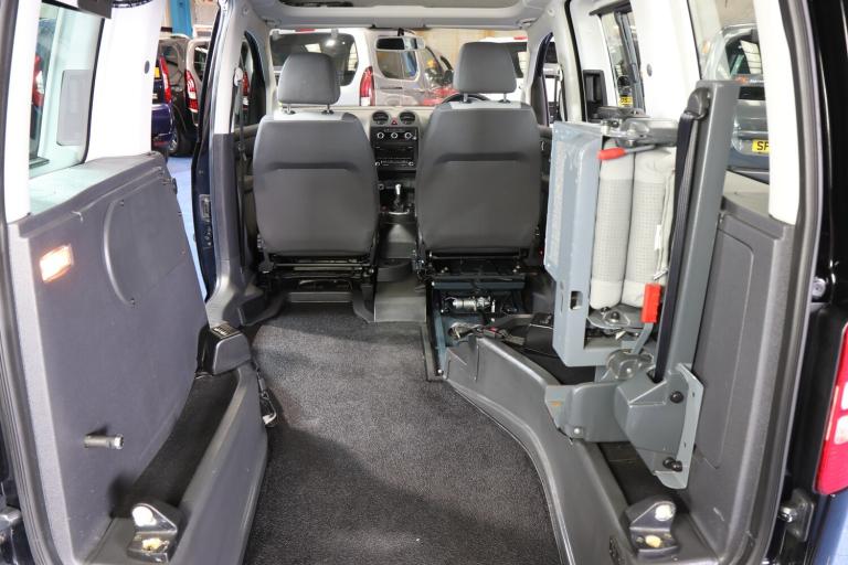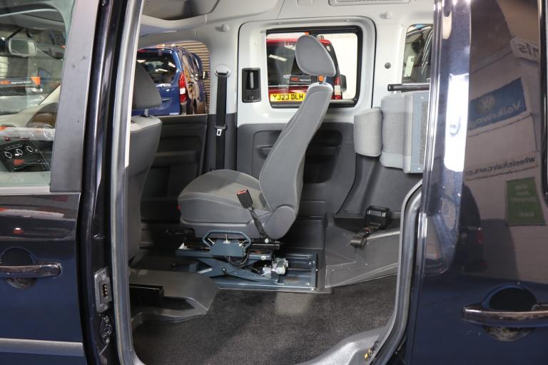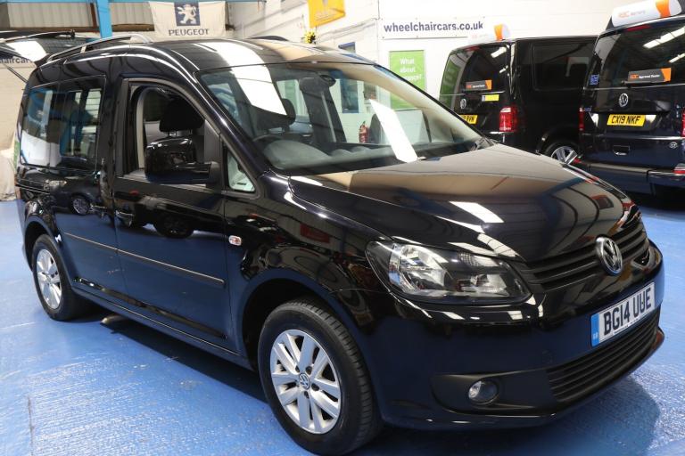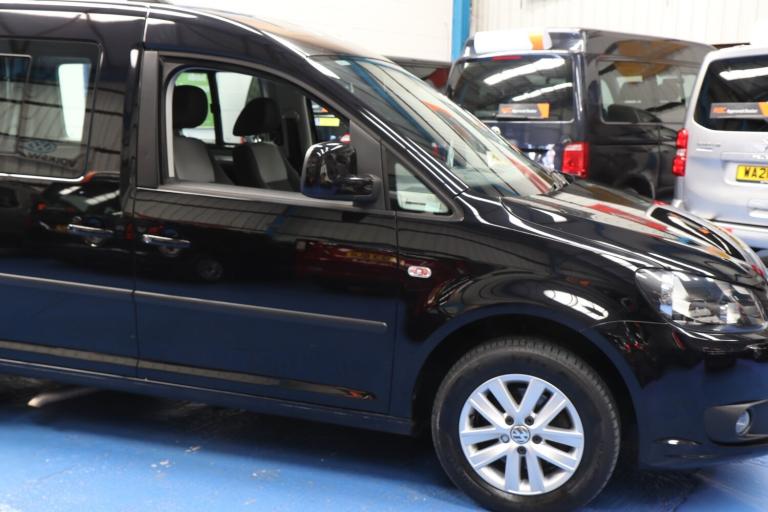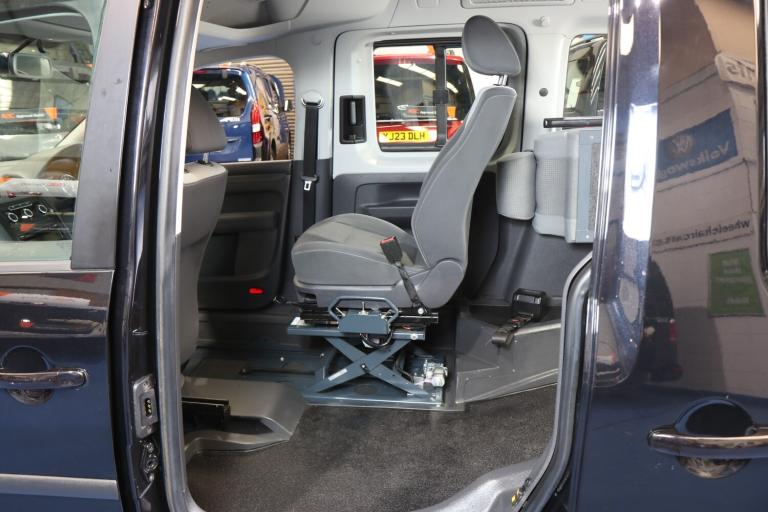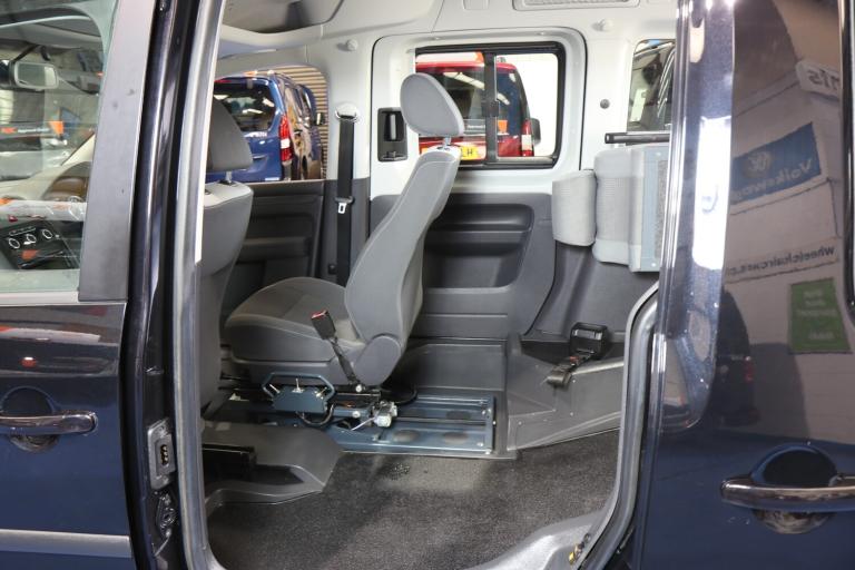 VW Caddy Transfer car, This car has a remote power tailgate and ramp and a 6 way swivel driver seat, this will give a wheelchair user independence, the disabled person can enter the car, transfer to the driver's seat without walking round the car, very nice car, Please call The Wheelchair Car Group 9am-8pm any day including weekends on (Stock Ref BG14UUE).