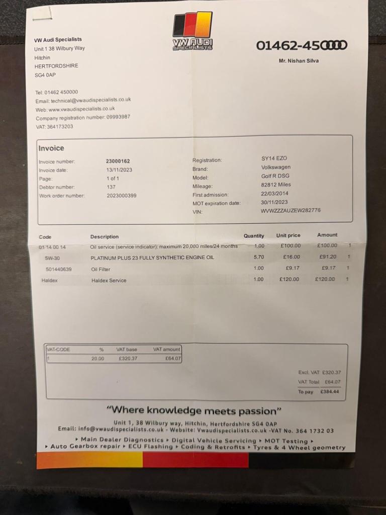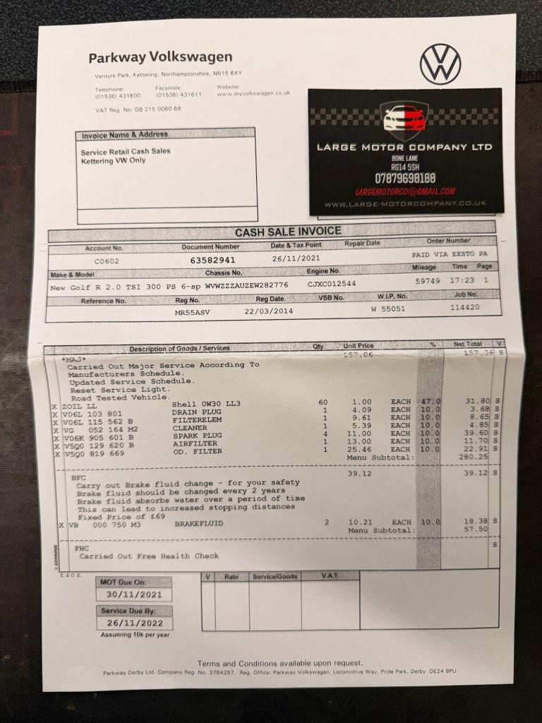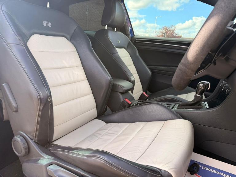 This 2014 Volkswagen Golf R boasts a MASSIVE SPECIFICATION with carbon 2 tone leather , digital dash upgrade , 19-inch Pretoria alloys , pan roof, pro navigation & much much more , it comes with a full service history, including a gearbox service December 2020, a haldex service November 2023 , a major service which includes cam chain & water pump July 2024 with its last service to be completed at 95,903 miles at point of sale , offering you peace of mind & a very well maintained golf R . This particular model is the TSI R variant, featuring a powerful 2.0 litre petrol engine and a four wheel drive drivetrain for excellent handling. It meets Euro 6 emission standards and comes with a 3 month warranty. You'll also benefit from a 12 month MOT provided on purchase. Inside, you'll find luxurious Nappa leather upholstery in Carbon, a Discover Navigation Pro touch screen system, and a Dynaudio premium sound system. The striking 19 inch Pretoria alloy wheels complete the sporty look.Experience exhilarating performance with this Golf R, capable of accelerating from 0 to 62 miles per hour in just 4.9 seconds, a speed that sets it apart from many other vehicles in its class. The electric and sliding glass panoramic sunroof adds an open and airy feel to the cabin, enhancing your driving experience. Furthermore, the generous boot space ensures practicality for all your needs, whether it's for daily errands or weekend getaways.