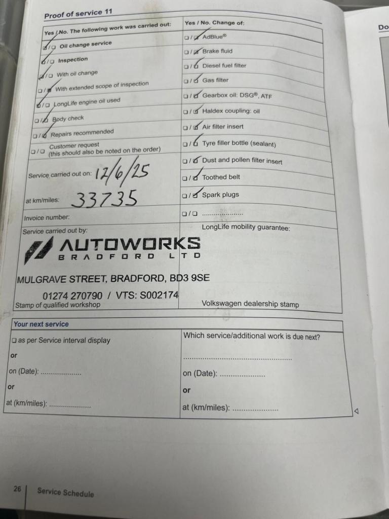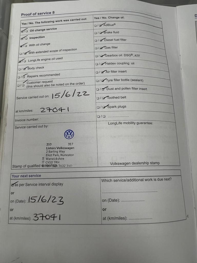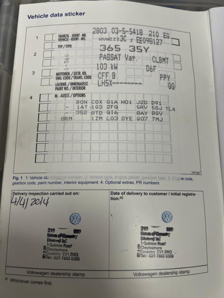 Available is this well maintained Volkswagen Passat Automatic with just 33,750 miles and only one previous owner. Backed by a full service history, including an impressive 10 main dealer services, this car has clearly been cared for to the highest standard. The most recent service was completed on 12/06/2025 at 33,735 miles also the timing belt, water pump & DSG gearbox service has been recently done on 4/03/2026 ensuring it is in excellent running condition.This Passat is both practical and efficient, delivering impressive fuel economy of up to 60 MPG, making it an ideal choice for both urban and motorway driving. It comes well equipped with front and rear parking sensors, a media screen with built in navigation, Bluetooth phone connectivity, cruise control, and heated full black leather seats for enhanced comfort and convenience. A multifunction steering wheel provides easy access to media and driving controls for a seamless driving experience.Additional features include a full size spare alloy wheel with tyre and a complete tyre changing kit, offering added reassurance on the road. A 12 month MOT will be applied, providing long term peace of mind.Included with the sale are 6 months RAC warranty and 12 months breakdown cover, giving you added confidence and support from day one.This Passat represents a fantastic combination of reliability, economy, and high specification, perfect for both family and executive use. Viewings and test drives are welcome.