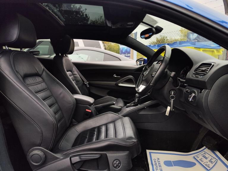 This is a lovely example, TOP Spec. Scirocco with VERY low genuine mileage! Only 1 former keeper!!Top spec including Sunroof, Full leather, Heated seats, Sat nav, Cruise control, climate control, automatic lights and much much more... 2 Keys, Just had a new cambelt fitted with engine oil and filters, MOT until October 2026 passed clean without any advisories, VERY LOW 100% genuine miles... RARE AND HARD TO FIND ANOTHER SCIROCCO AUTOMATIC TOP SPEC AND MILEAGE!!This 2014 Volkswagen Scirocco TDI presents an exceptional opportunity with its remarkably low mileage of just 39,863 miles, a testament to its careful ownership by only two previous keepers. Powered by a robust 2.0 litre diesel engine, this model offers a compelling blend of performance and efficiency. It comes equipped with practical features such as a dusk sensor for automatic headlights, manual air conditioning to keep you comfortable in all conditions.The Scirocco TDI is designed to impress, achieving 0-62mph in a brisk 9.3 seconds, demonstrating its spirited performance. This acceleration figure highlights its capability compared to other vehicles in its class. Furthermore, the generous boot space ensures you have ample room for luggage or shopping, making it a versatile choice for both daily commutes and longer journeys