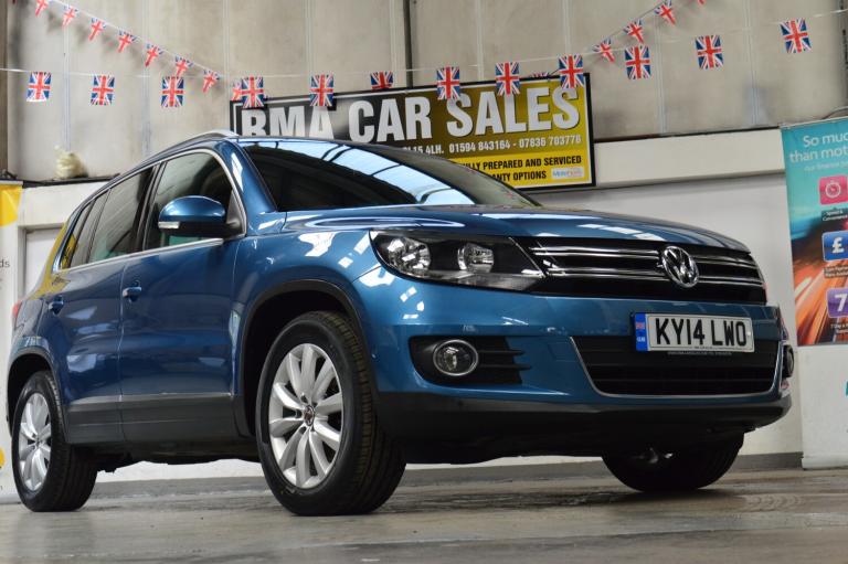 VOLKSWAGEN TIGUAN 2.0 TDi BLUEMOTION TECH MATCH 5dr 2WD DIESEL. IN PACIFIC BLUE WE ARE DELIGHTED TO OFFER FOR SALE THIS STUNNING LOW MILEAGE TIGUAN. IT IS IN PRISTINE CONDITION INSIDE AND OUT, THE BODYWORK IS FREE FROM ANY DINGS AND DENTS OR BLEMISHES AND THE INTERIOR IS SPOTLESSLY CLEAN AND FRESH. WE HAVE UNDERTAKEN A RECENT SERVICE TO INCLUDE A CAMBELT CHANGE WHICH INCLUDED 2 NEW TYRES. FEATURES INCLUDE DAYTIME RUNNING LIGHTS, FRONT FOGS, REAR PRIVACY GLASS, COLOUR CODED BUMPERS AND MIRRORS, ROOF RAILS, FRONT AND REAR PARKING SENSORS, CLOTH UPHOLSTERY, DUAL ZONE CLIMATE CONTROL, AIR CONDITIONING, HEATED STEERING WHEEL, ELECTRONIC PARKING BRAKE WITH AUTO HOLD, COLOUR TOUCH SCREEN, CD/DAB RADIO, AUX/USB/IPOD INTERFACE, BLUETOOTH TELEPHONE CONNECTIVITY, SATELLITE NAVIGATION, AUTO STOP/START, SPLIT/FOLD REAR SEATS, SPARE WHEEL, REMOTE CENTRAL LOCKING AND 2 x KEYS. THIS IS A REAL GEM, ONE NOT TO BE MISSED. AS WE ARE AN AA CARS DEALER THIS VEHICLE COMES WITH A FULL AA HISTORY CHECK AND ALSO 12 MONTHS AA BREAKDOWN COVER. EXTENDED AA WARRANTY AVAILABLE. WE ARE ALSO A MEMBER OF THE AA DEALER PROMISE SCHEME. NEW MOT ISSUED ON PURCHASE. WE PRIDE OURSELVES ON THE PRESENTATION OF OUR VEHICLES WHICH ARE FULLY VALETED AND PREPARED TO THE VERY HIGHEST OF STANDARDS. AS A RESULT WE FIRMLY BELIEVE THAT OUR FORECOURT IS UNRIVALLED AND OUR REPUTATION FOR SELLING PREMIUM USED CARS IS SECOND TO NONE. WALK AROUND VIDEO AND DELIVERY OPTIONS ARE AVAILABLE UPON REQUEST.