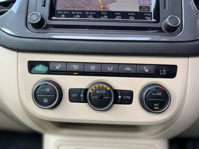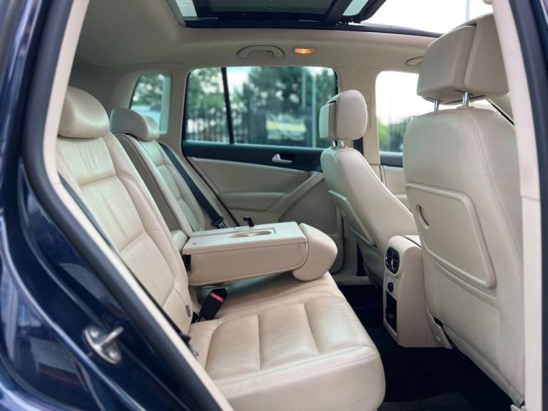 New in stock we have a stunning 2015 VOLKSWAGEN TIGUAN 2.0 MATCH TDI BLUEMOTION TECHNOLOGY 5d 148 BHP, this vehicle is finished in blue and comes with light coloured interior. This vehicle comes with full service history with 8 services the most recent being 05/05/[Phone number removed] miles. This vehcile is ULEZ compliant - This vehicle features - Discover navigation system with 6.5" colour touch screen and 8 speakers - DAB Digital radio - MP3 Compatible CD player - MDI with USB/iPod connection cables - Bluetooth Telephone preparation - SD card slot - 2 Zone electronic climate control with automatic air - recirculation - Park assist with front and rear parking sensors and optical display - Speed sensitive power steering - Dusk sensor + auto driving lights - Electronic parking brake with auto hold - This vehicle will come with 12 month MOT - 6 month warranty - Great Rates of Finance Available with Zero Deposit - This is a great family car which drives and performs superbly - Please call the Sales Team to arrange a viewing/test drive. .Anthracite-Metallic interior trim, 12V socket in luggage compartment, 18 front module, 2 Zone electronic climate control with automatic air recirculation, 3 rear 3 point seatbelts, 3 rear headrests, 3 spoke multi-function leather steering wheel and gearknob, 5 boot load lashing points, 60/40 split folding rear seat, ABS+EBD+Brake assist, Alarm with interior protection, Auto dimming rear view mirror/rain sensor, Automatic coming home lighting, Aux-in socket, Bluetooth Telephone preparation, Body colour door handles, Body colour door mirrors with integral indicators, Body coloured bumpers, Chrome roof rails, Chrome side window surrounds, Chrome trimmed front air intake surrounds, Cornering front fog lights, Curtain airbags, DAB Digital radio, Diesel particulate filter, Discover navigation system with 6.5 colour touch screen and 8 speakers, Driver/Front Passenger airbags, Driver/Passenger whiplash optimised head restraints, Dusk sensor + auto driving lights, Electric heated + adjustable door mirrors, Electronic engine immobiliser, Electronic parking brake with auto hold, ESP with EDL + ASR, Fatigue detection system, Foldable front passenger seat backrest, Front and rear electric windows, Front centre armrest with storage + rear 2 air vents + cupholders, Front cupholders x 2, Front footwell illumination, Front reading lights, Front seat back storage pockets, Front seatback folding tables, Front side airbags, Front sports seats, Green tinted heat insulating glass, Heat insulated tinted glass from B pillar back, Heated rear window, Height adjustable front 3 point seatbelts + pretensioners, Height/reach adjust steering wheel, Illuminated vanity mirrors, Interior light with delay, Isofix Preparation 2 Rear child seats, Keyless entry, Lights on warning, Load through provision with 2 cupholders when folded, Lockable cooled glovebox, Luggage compartment lighting, MDI with USB/iPod connection cables, MP3 Compatible CD player, Multifunction computer - Highline, Park assist with front and rear parking sensors and optical display, Passenger airbag deactivate switch, Passenger seat height adjuster, Passenger seat lumbar adjust, Rear windscreen washer and wiper with interval delay, Remote central locking with 2 remote folding keys, Removable luggage cover, SD card slot, Seatbelt warning lamp and buzzer, Service interval indicator, Silver decorative inserts in door panels, Sliding/reclining rear seats, Speed sensitive power steering, Steel finish air vent surround, Steel sp