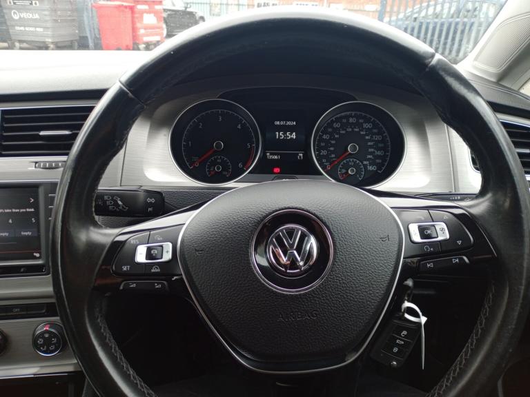 VOLKSWAGEN GOLF 1.6 TDI 110 Match 5dr £0 Tax - ULEZ FREE - 2 keepers, Adaptive cruise control, Bluetooth Telephone preparation, Exterior temperature gauge, Flat tyre indicator, Infotainment system, Instrument cluster in white, Multifunction computer, Ultrasonic front and rear optical and audible parking sensors, CD/MP3/WMA, USB and SD card reader, aux-in, Composition media system, DAB Digital radio, MDI with USB/iPod connection cables, Auto dimming rear view mirror, Automatic coming/leaving home lighting function, Automatic headlights, Cornering front fog lights, Daytime running lights, Electric folding door mirrors with puddle lamps, Electric front & rear windows, Electrically adjustable and heated door mirrors, Rain sensor, Rear diffuser, 12V socket in luggage compartment, 60/40 split folding rear seat, Dust/pollen filter, Isofix preparation for 2 rear child seats, Lockable, illuminated, cooled glovebox, Multifunction leather steering wheel with leather gear knob/handbrake grip, Rear centre armrest with 2 cupholders, 3 point height adj front seatbelts + pretensioners, 3 rear 3 point seatbelts, ABS, Child locks on rear doors, Driver/Front Passenger airbags, Electronic parking brake with auto hold, Electronic tyre pressure monitoring, ESP with EDL + ASR, Front passenger airbag deactivation, HBA (Hydraulic Brake Assist), Alarm with interior protection.