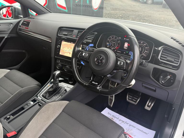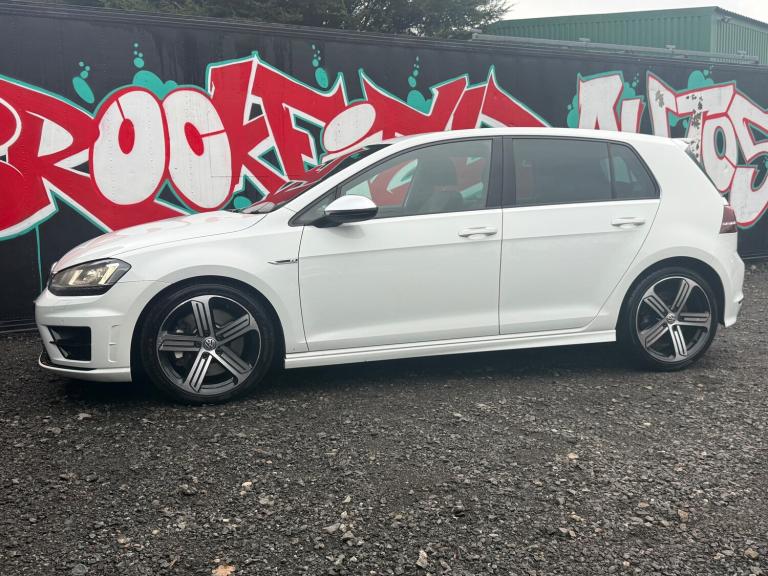 This 2015 Volkswagen Golf 2.0 TSI BlueMotion Tech R Hatchback with 57300 miles is a stylish and efficient choice for those in search of a reliable vehicle. This 5-door hatchback is powered by a petrol engine and comes with a 5-seat capacity, making it an ideal choice for families or daily commuters. The vehicle is ULEZ compliant and comes in a sleek Oryx White finish. Equipped with features such as Digital Dash, Voice Activation, Car-Net App Connect, and Discover Navigation Pro Touch-Screen Navigation DVD Radio System, this car offers convenience and entertainment for all occupants. Additionally, the tinted glass and heat-insulating rear windows ensure a comfortable and enjoyable driving experience. Overall, this Volkswagen Golf is a practical and appealing choice for anyone in the market for a hatchback. Features Include: , 12v socket, 12v socket - luggage compartment, bluetooth audio connection, bluetooth telephone preparation, colour touch screen - 6.5in, composition media system, dab - digital radio reception, mdi - multi device interface with usb - ipod connection cables, radio aerial integrated into rear windscreen, sd card reader, single cd player, sound output - 4x20 watt, speakers x8, 18in alloy wheels - cadiz, anti-theft wheel bolts, body coloured bumpers, body coloured door handles, brake calipers - black, bumpers - unique r, chrome trimmed front air intake grille surround, door mirrors - electrically adjustable-heated and folding, door mirrors - matt chrome with integrated indicators led, door mirrors - reverse activated kerb view adjustment on passengers, dynamic curve lighting, electric windows - front and rear, exhaust tailpipes - twin oval chrome left and right, front air intake - black honeycomb, heated rear windscreen, mirror pack, r exterior badge, radiator grille - unique r with matt-chrome strip, rear diffuser - black, side sill - r, smoked rear light clusters, spare wheel - space saver steel, styling pack for r, tinted glass - heat insulating rear 65 percent light absorbing from b pillar backwards, uniquely shaped roof spoiler, 2 zone electronic climate control with automatic air recirculation, air vent surrounds - chrome effect, ambient lighting - blue, ambient lighting pack, armrest - front centre with storage compartment, automatic dimming rear view mirror, carpet - black, carpet mats - front and rear, centre console - gloss black decorative inserts, chrome plated electric mirror adjustment switch surround, chrome plated electric