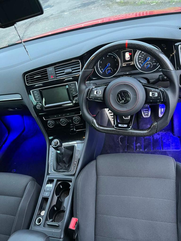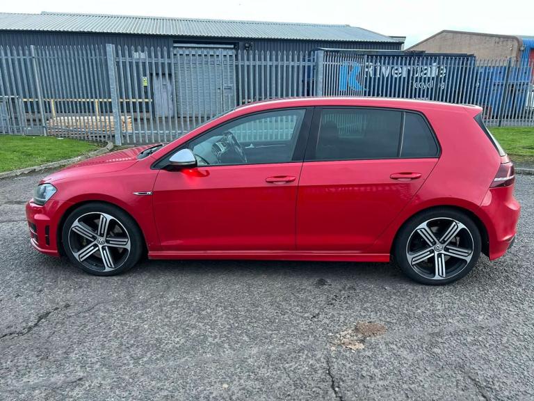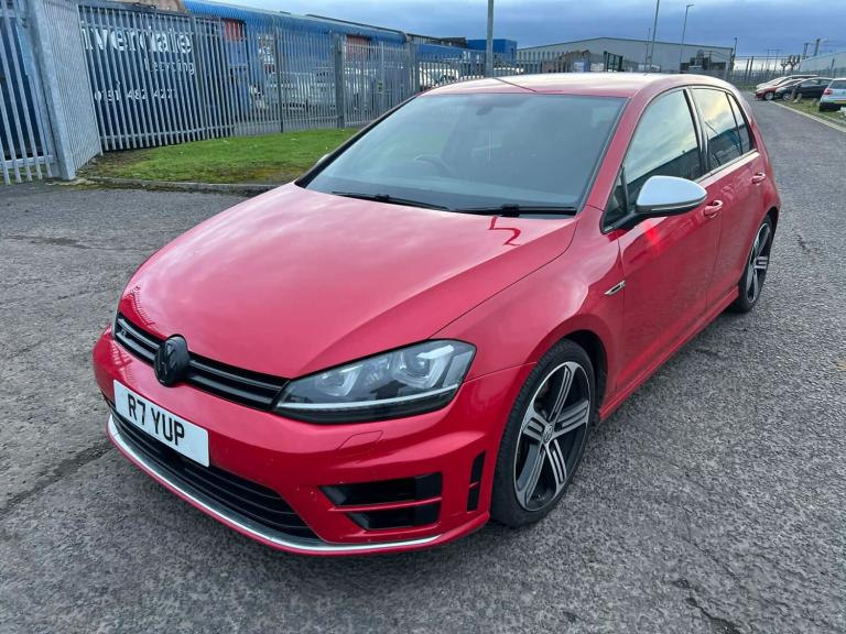2014 vw golf r 2.0 4motion in red , covered only 56k genuine miles , drives superb very fast with no faults, been mapped sounds stunning, immaculate embossed interior, Exterior clean few age related marks , very cheap car , spec includes, front drl lights, alloy wheels, rear privacy glass, full bodykit, remote central locking, multifunctional upgraded steering wheel, cruise control, handsfree telephone, trip computer, electric windows x4, electric mirrors, 6 speed manual better than the weaker dsg box, dual digital climate control, aircon, Brake hold switch, 3 speed settings, cd/tuner with dab radio, satnav and bluetooth, much more not mentioned, part ex welcome, swaps maybes, boy cant get insured on it , private plate stays with car
