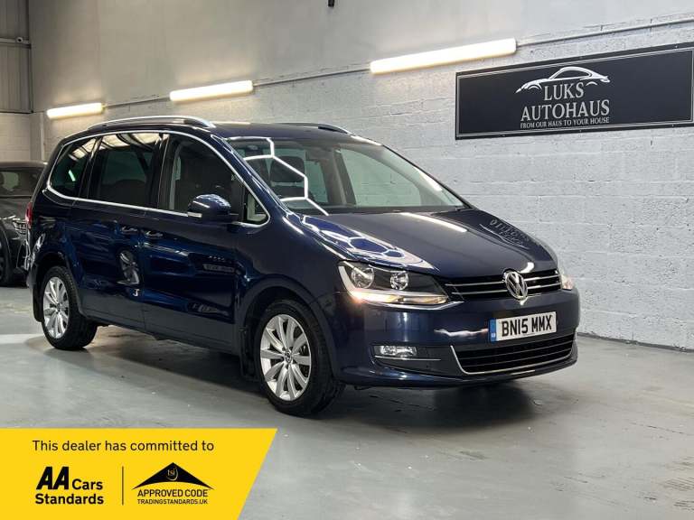 Volkswagen Sharan 2.0 TDI SEL DSG 5dr 7 Seater 1 Owner Full Service History Pan RoofThis 2015 Volkswagen Sharan TDI SEL is a fantastic example, having had just 1 owner from new with a clear vehicle history check, offering complete peace of mind.Powered by a reliable and efficient 2.0 litre diesel engine, this Sharan delivers both performance and practicality, with an impressive 2200kg towing capacity – ideal for families, caravans, or business use.The vehicle comes with a full service history, with the last service carried out on 08/04/2026 at 86,995 miles. It has also recently had brakes replaced all round along with the cambelt and water pump, meaning key maintenance has already been taken care of.The MOT is valid until March 2027, and the car will come with a 6 month warranty for added reassurance.Specification includes:7 Seats (Full-size MPV)Bluetooth ConnectivityFront Parking SensorsHeated Front Seats3-Zone Electronic Climate ControlElectric Sliding Panoramic SunroofAlloy WheelsMultifunction Steering WheelThis model offers a smooth and responsive drive, achieving 0–62mph in just 9.6 seconds, which is excellent for a vehicle of this size and class.Spacious, practical, and packed with features, this Sharan is the perfect choice for growing families or anyone needing a versatile and comfortable vehicle.Part exchange welcome Finance available Nationwide delivery available