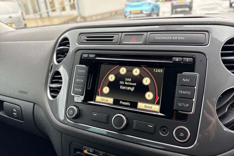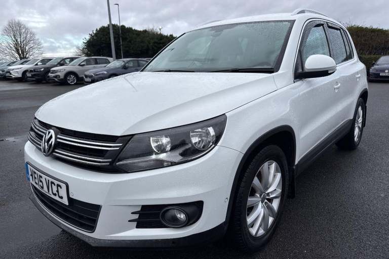 Available now at Motor Match Chester is this Volkswagen Tiguan 2.0 TDI BlueMotion Tech Match, which comes in a the stunning Pure White metallic paintwork! This vehicle boasts a great service history, with services completed at 11101, 16052, 23185, 24982, 27312, 30822 and 34287 miles, and sits on stunning 17"" alloy wheels for a fantastic look! The vehicles halogen headlights and front fog lights ensure youre seen at all hours of the day, and the front and rear parking sensors are perfect for alerting you of any obstructions when manoeuvring. The boot provides a great amount of storage space, with the option of folding the rear seats for any larger items, and the interior is finished in a full cloth upholstery for a stylish feel. Youll find Isofix mounting points on both outer rear seats, and the front seats have been designed for excellent comfort during those longer journeys! The multifunctional steering wheel has mounted controls for audio and telephone functions, perfect for making small adjustments whilst out on the go. In terms of entertainment, you have the choice of the DAB, AM and FM radio, or you can connect devices to listen to your own music. You can use the Bluetooth function to connect your mobile device to make and take phone calls whilst out on the go and the satellite navigation allows you to plan routes and locate nearby points of interest for a smoother journey! This vehicle is compliant with Clean Air Zone (CAZ) or Ultra Low Emission Zone (ULEZ) reg...