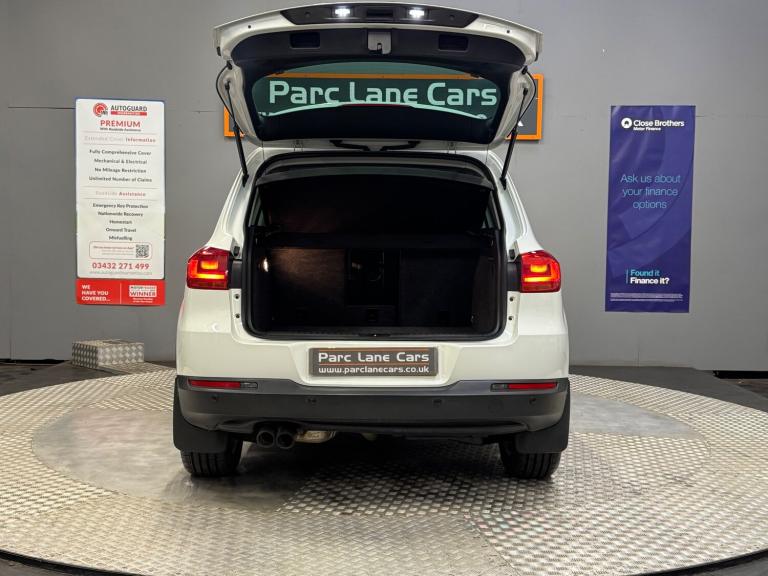PARC LANE CARS OF GOSFORTH PRESENT THIS LOVELY VOLKSWAGEN TIGUAN TDI MATCH, FINISHED IN PURE WHITE PAINT, WITH BLACK CLOTH INTERIOR TRIM. THIS TIGUAN HAS COVERED 74,945 MILES AND COMES WITH A COMPREHENSIVE SERVICE HISTORY; 12/09/2016 - 9,363 MILES 13/09/2017 - 19,597 MILES 03/09/2018 - 27,504 MILES 21/08/2019 - 37,367 MILES 26/08/2020 - 42,973 MILES 19/08/2021 - 46,776 MILES 22/08/2022 - 53,120 MILES 01/09/2023 - 58,491 MILES 10/12/2025 - 74,945 MILES THIS TIGUAN COMES WITH 2 REMOTE KEYS AND IS FITTED WITH THE FOLLOWING SPECIFICATION; 6 SPEED DIESEL ENGINE INFOTAINMENT SCREEN SAT NAV BLUETOOTH CRUISE CONTROL AIR CONDITIONING PARKING SENSORS TRACTION CONTROL AUX, USB & 12V MEDIA CONNECTIONS THIS VOLKSWAGEN TIGUAN IS A LOVELY EXAMPLE, AND IS CERTAINLY NOT TO BE MISSED. REG NO: SN65 KGC? ** LISTED SPECIFICATION IS SHOWN AS ACCURATELY AS POSSIBLE. ERRORS MAY OCCUR. PLEASE ASK US TO CLARIFY IF YOU HAVE ANY QUERIES. ** Features Include: , 12v socket - centre console, 12v socket - luggage compartment, 3 years car net guide, aux-in socket, bluetooth telephone preparation, colour touch screen - 6.5in, dab+ - digital radio reception, dash-mounted mp3 compatible cd player, discover navigation touch-screen system, mdi - multi device interface, sd card reader, sound output - 4x20 watt, speakers x8, 17in alloy wheels - new orleans, 18 degree angle of approach, anti-theft wheel bolts, body coloured bumpers, body coloured door handles, body-coloured door mirrors with integrated indicators, chrome trimmed front air intake grille surround, door mirrors - electrically adjustable and heated, door protectors - black with chrome insert, electric windows - front and rear, heated rear window, radiator grille - black with chrome louvres, roof rails - chrome plated, side window surrounds - chrome, side and rear protection pack - black with chrome-plated insert, spare wheel - space saver steel, tinted glass - heat insulating rear 65 percent light absorbing from b pillar backwards, 2 zone electronic climate control with automatic air recirculation, air vent surrounds - steel finish, armrest - front centre with storage compartment, automatic dimming rear view mirror, cup holders - rear x2, dashboard and centre console - anthracite metallic, drivers seat height adjustment, folding front seat backrest, folding table on back of front seats, footwell illumination - front, front passengers seat height adjustment, front seat back storage pockets,