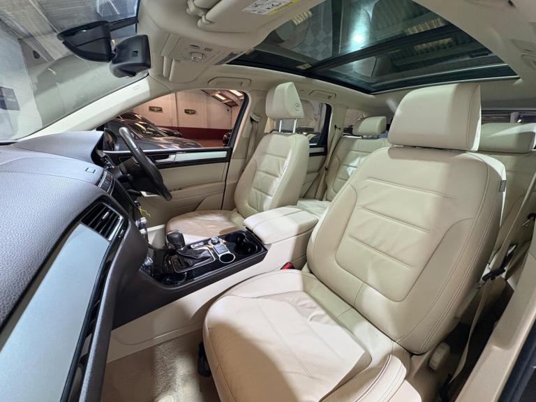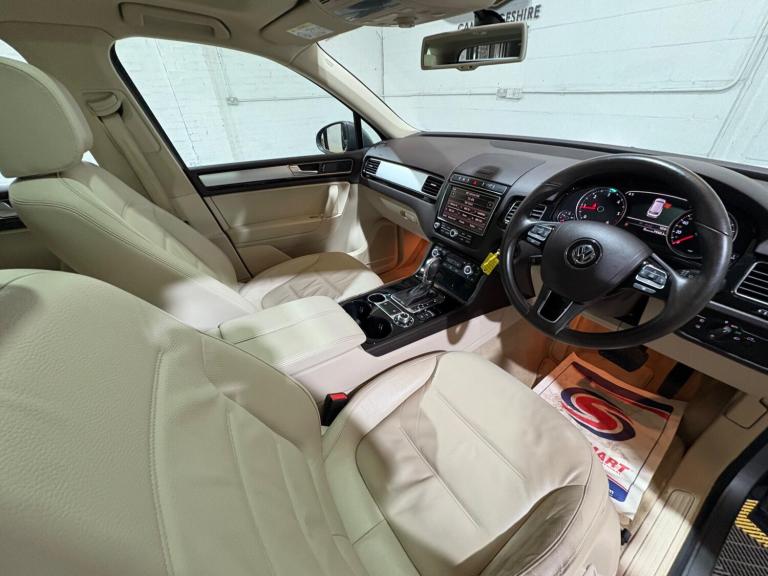 TOUAREG - ESCAPE MODEL, FINANCE AVAILABLE, ONLY 1 OWNER FROM NEW, REVERSE CAMERA, PANROOF, SERVICE HISTORY, LEATHER, SATNAV, GREAT DRIVE, Boasting a single owner from new and a clear vehicle history check, this 2015 Volkswagen Touareg TDI V6 Escape presents a compelling proposition. Powered by a robust 3.0L Diesel engine and featuring a capable Four Wheel Drive system, this Euro 6 compliant SUV is ready for any adventure. Its Escape trim level ensures a comfortable and convenient driving experience, complemented by notable features such as heated front seats, front and rear parking sensors, and automatic dusk sensing headlights with a coming and leaving home function. The 2 zone electronic climate control with automatic air recirculation maintains the perfect cabin temperature for all occupants.With a modest 87,000 miles on the clock, this Touareg offers excellent value, especially considering its low insurance group rating. The generous boot space provides ample room for luggage or shopping, making it a practical choice for families and active lifestyles. For those who appreciate performance, the 0-62mph acceleration in just 7.6 seconds demonstrates the potent capabilities of the V6 engine. Furthermore, its impressive 3500 kg towing weight capability means it can handle substantial loads, setting it apart from many other vehicles in its class.
