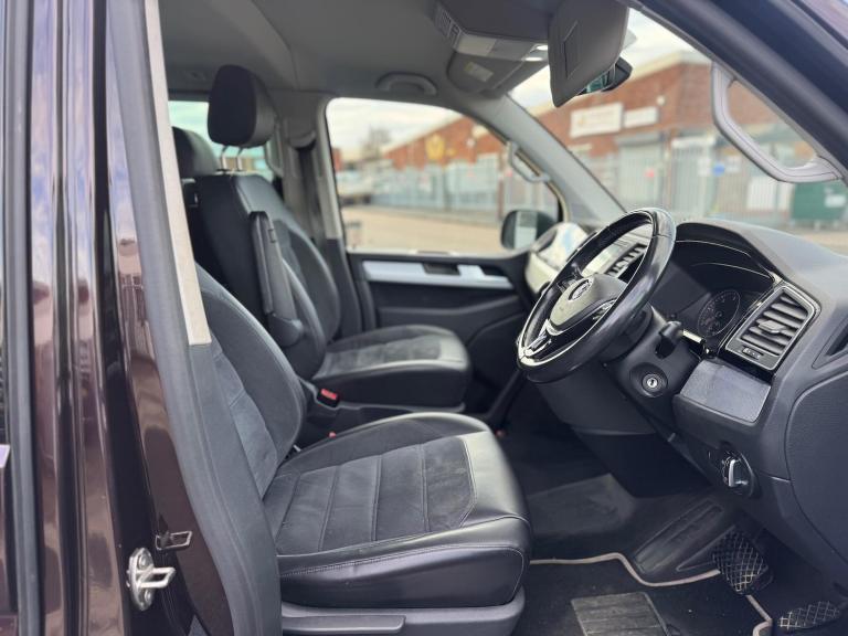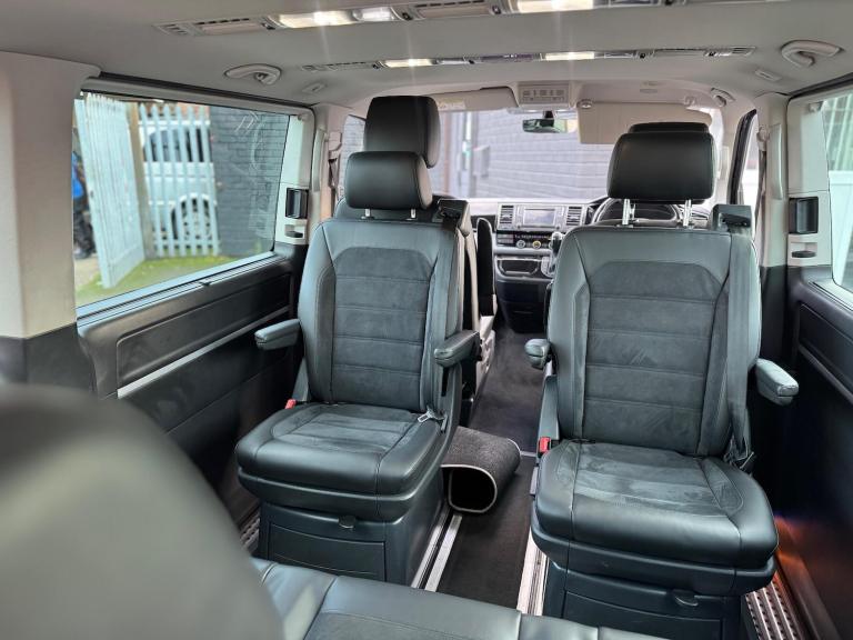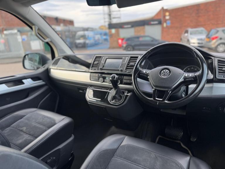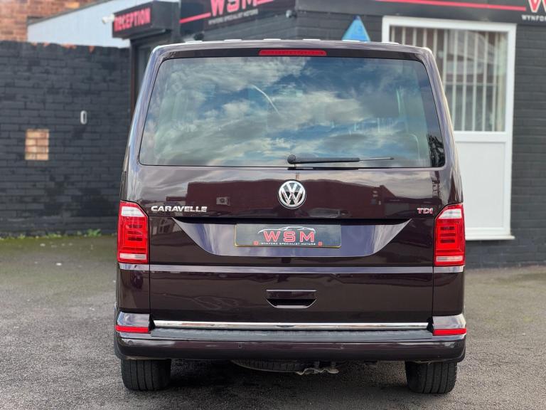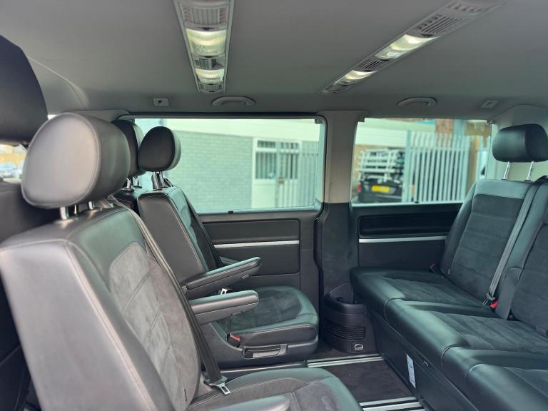 This 2016 Volkswagen Caravelle BiTDI Executive is a well maintained example, offering a premium experience for up to seven occupants. Powered by a robust 2.0 litre Euro 6 diesel engine, this Executive trim model combines performance with efficiency. It boasts a substantial towing weight of 2500 kg, making it a versatile choice for various needs. The vehicle is equipped with front and rear mud flaps for added protection, and front and rear parking sensors, including parking assistance, to aid manoeuvrability.Experience exceptional comfort with the 3 zone Climatronic air conditioning system, featuring a second evaporator, auxiliary heater, and an air conditioned headliner with additional passenger control. Stay connected and entertained with the integrated Bluetooth system and the Discover Media Navigation System Plus. This Caravelle achieves an impressive 0-62mph in just 9.9 seconds, demonstrating its strong performance capabilities which set it apart from other vehicles in its class.