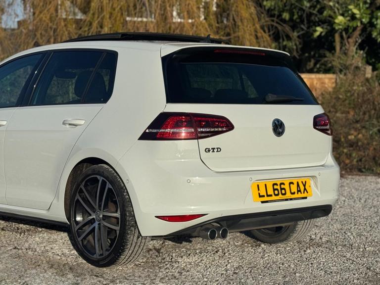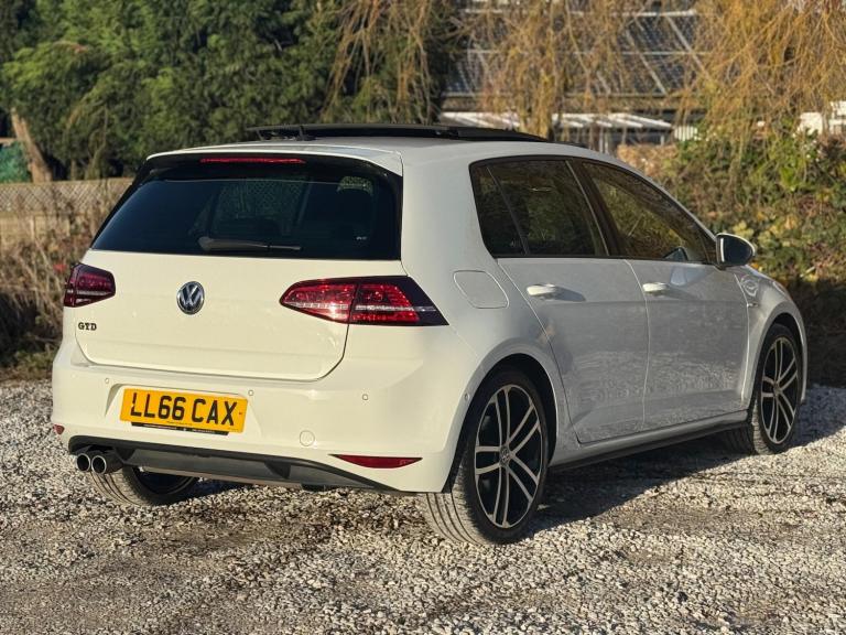 1 FORMER KEEPER2 KEYSFULL SERVICE HISTORY - SERVICE INTERVALS @ 9K, 17K, 25K, 52K, 61K, 73K - DSG SERVICE DONE @ 61,511 - CAMBELT & WATERPUMP CHANGED @ 63,543 - MOST RECENT SERVICE DONE @ 73,968ULEZ COMPLIANTLOGBOOKFeatures:- Adaptive Cruise Control - Panoramic Sunroof- Rear Camera- Park AssistThis 2016 Volkswagen Golf TDI GTD presents a compelling proposition with its remarkably low mileage of just 77,500 miles for its age, coupled with a clear vehicle history check and only two previous owners. Powered by a robust 2.0 litre Euro 6 diesel engine, this GTD variant offers an impressive 0-62mph acceleration time of 7.5 seconds, making for an engaging driving experience. The exterior is enhanced by striking 19 inch Santiago alloy wheels, and you can enjoy the open air with the included panoramic sunroof, which also offers an opening function.Inside, you will find a comfortable and convenient cabin featuring 2 zone electronic climate control with automatic air recirculation, ensuring a pleasant temperature for all occupants. Connectivity is made simple with Bluetooth telephone preparation, allowing for hands free calls and music streaming. Practicality is also a strong suit, with ample boot space for all your needs, and the rear view camera aids in effortless parking. These features collectively demonstrate how this Golf TDI GTD stands out from other vehicles in its class.