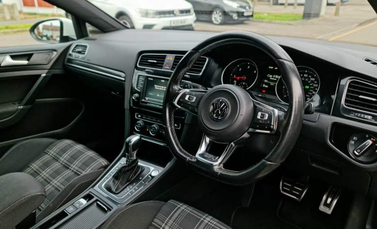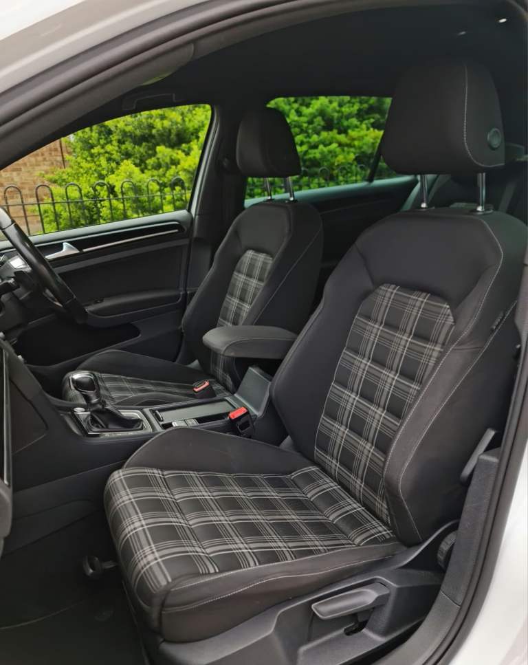 2016 Volkswagen Golf GTD finished in Oryx White, featuring the iconic Tartan interior.