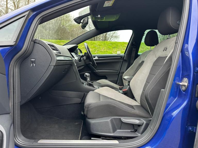 Usual Golf R refinements, Full Electric Pack, PAS, ABS, 4 Motion, Cloth Interior, ‘R’ Logo Seats, Media, Bluetooth, DSG Gearbox with Paddleshift, Multi Function Steering Wheel, Active Cruise Control (ACC), Autohold, Bluetooth, On Board Computer, Front and Rear Parking Sensors, Folding Mirrors, Stop/Start Function, Selectable Driving Modes, Climate Control, ISOFIX, Flat Bottom Steering Wheel, Front and Rear LED Lights, Xenon Headlights, Headlamp Washers, 18” Unmarked Alloy Wheels, Quad Exhaust, Gloss Black Mirrors, Gloss Black Badges.