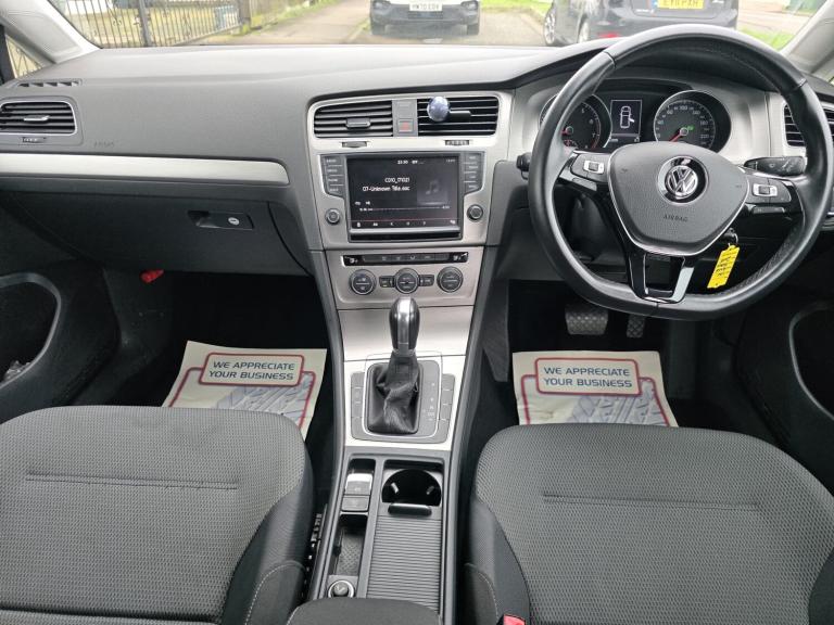 VOLKSWAGEN GOLF S BLUEMOTION TECHNOLOGY TSI 105 5dr hatchback, Automatic, Petrol COMES WITHComposition Media System Rear Window Aerial Brake Pad Wear Indicator Multifunction Computer, Speedo and Rev Counter Electronic Odometer Trip Service Interval Display Exterior Temperature Gauge and Fuel Gauge Tyre Pressure Loss Indicator, 15in Steel Wheels Black Front Air Intake and Radiator Grille, Electric Windows Front, Electrically Heated and Adjustable Door Mirrors, Exhaust Tailpipes Twin, Full Size Wheel Trims, Heated Rear Windscreen, Rear Diffuser Black, Steel Space Saver Spare Wheel, Tailgate with Integrated Rear Roof Spoiler, Halogen Clear Headlights Range Adjustable with Daytime Running Lights, High Level 3rd Brake Light Incorporating LED Technology, Lights on Warning Buzzer, Air Conditioning Cup Holders Front x2, Dark Rhodium Fine Decorative Inserts in Dash and Door Panels, Drivers and Front Passengers Seat Height Adjustment, Drivers and Passengers Safety Optimised Head Restraints, Front Centre Armrest with Storage Compartment and Two Rear Air Vents, Galvanised Body, Instrument Lighting White Adjustable Panel Illumination, Interior Light Delay, Load Lashing Points x4 in Luggage Compartment, Reading Lights Reflectors in Doors, Steering Column Height and Reach Adjustable, Three Rear Head Restraints, Three Spoke Steering Wheel, Vanity Mirrors illuminated, Variable Boot Floor Height Adjustable and Removable, Power Assisted Steering Speed Sensitive, Electronic Engine Immobiliser, Electronic Parking Brake with Auto Hold Function, ESC Electronic Stability Control including EDL Electronic Differential Lock and ASR Traction Control, Height Adjustable Front Three Point Seat Belts with Tensioners, ISOFIX Child Seat Preparation for 2 Rear Seats, Rear Number Plate Lights Incorporating LED Technology, Rear Screen Wash Wipe with Intermittent Wipe, Remote Central Locking with 2 Remote Folding Keys, Three Rear 3 Point Seat Belts, Warning Buzzer and Light for Front Seat Belts if Unfastened, XDS Electronic Differential Lock for Improved Traction and Handling