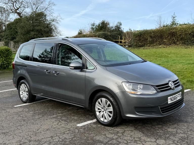 2016 Volkswagen Sharan 2.0 TDI SE 7 Seats 1 Owner FSH + Cambelt Euro 6A spacious, practical, and highly versatile 7-seat MPV, presented with just 68,000 miles and excellent ownership and maintenance credentials. Key Features:1 Owner from newOnly 68,000 miles – low mileage for its ageFull service historyCambelt replaced – major maintenance already completed2.0 TDI diesel engine – powerful and economicalEuro 6 compliant – ULEZ friendly7 seats – ideal family vehicleManual transmission Comfort & Technology:Multifunction leather-trimmed steering wheelBluetooth audio & phone connectivity3-zone electronic climate control – individual passenger comfortAutomatic dusk-sensing headlightsRear parking sensors – easy manoeuvring???? Performance & Capability:0–62 mph: 10.3 seconds2,200 kg towing capacity – ideal for caravans or trailersSmooth, refined drive — perfect for long journeys???? Practicality:Large, flexible interior spaceSliding rear doors for easy accessHuge boot capacity with seats folded???? Summary:This 1-owner Volkswagen Sharan comes with full service history and cambelt replacement, offering peace of mind alongside superb practicality. With 7 seats, Euro 6 compliance, low mileage, and strong towing capability, it’s an outstanding family or lifestyle vehicle ready to drive away.