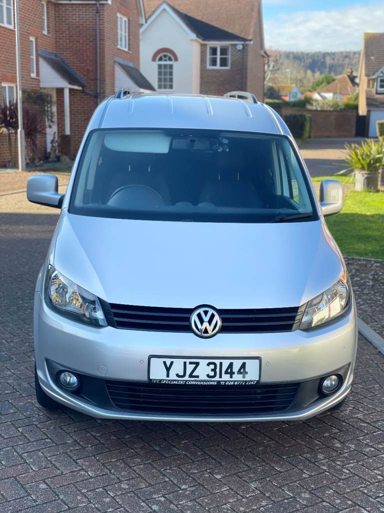 2016 VW Caddy Life DSG Automatic – Wheelchair Accessible – ULEZ Compliant. Covered 74,058 miles with MOT until 02/02/2027 (no advisories), Cambelt replaced by VW main dealer on 13/02/2020 at 50,187 miles, 1 previous owner and full service history with a large folder of invoices. Professionally converted wheelchair-accessible vehicle by TBC Mobility Conversions, featuring rear ramp and electric winch, 5 seats plus wheelchair position. Great spec including reversing camera, front and rear parking sensors, satellite navigation, Bluetooth radio, dash cam, air conditioning, cruise control, alloy wheels and privacy glass. Immaculate condition inside and out and drives very well. Located in Eastbourne — please message to view, thanks.