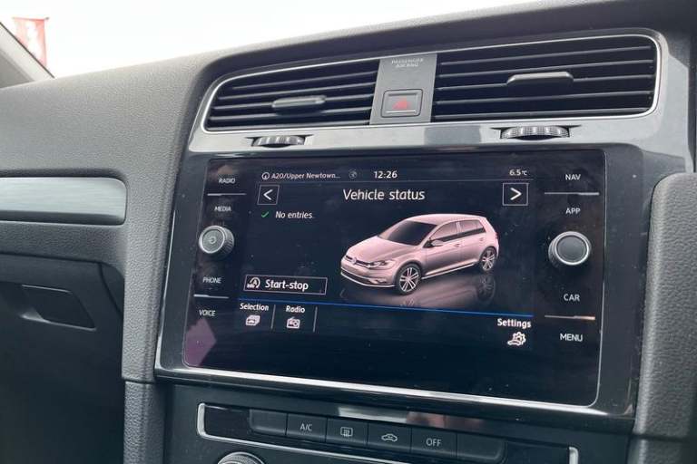 'Lights On' Reminder warning buzzer, 8 colour touch screen, ACC - Adaptive cruise control with front assist, forward collision warning, distance monitoring, city emergency brake and speed limiter, App-Connect, Bluetooth telephone and audio connection for compatible devices, Brake pad wear indicator warning light, Driver alert system, Driver profile selection, Front assist, radar sensor controlled distance monitor, city emergency braking + predictive pedestrian protection, Front assistant collision mitigation, Instrument cluster in white, Multifunction computer with visual gear change recommendation for fuel consumption, Power assisted speed sensitive electro-mechanical steering, Speedo, rev counter, electronic odometer, trip, service interval display, exterior temperature and fuel gauge, Stop/start system, Ultrasonic front and rear optical and audible parking sensors, Warning buzzer and light for front seatbelts unfastened, Automatic coming/leaving home lighting function, Automatic dimming rear view mirror/rain sensor, Black front air intake and radiator grille with chrome insert, Black rear diffuser, Body colour bumpers, Body colour door handles, Body colour door mirrors with integrated indicators, Electric front windows, Electric rear windows, Electrically adjustable and heated door mirrors, Glavanised body, Heated rear windscreen, High level 3rd brake light incorporating LED Technology, Range adjustable headlights via infotainment system with LED daytime running