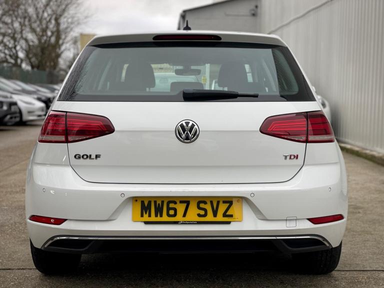 A smart and ever-popular Volkswagen Golf 1.6 TDI SE, finished in classic White. Renowned for its comfort, build quality and excellent fuel economy, this Golf makes an ideal daily driver or family hatchback. Covering 87,000 miles, the car benefits from a strong and consistent service history carried out at 15k, 27k, 37k, 47k, 58k and most recently less than 10 miles ago at 87,600 miles, meaning it is fully up to date and ready to drive away. It also comes with an MOT valid until January 2027 with NO advisories, offering excellent peace of mind.The SE model is well specified and focused on comfort, safety and ease of use. Power comes from Volkswagen’s proven 1.6 TDI diesel engine, delivering smooth performance with impressive real-world economy and low running costs, while remaining Euro 6 compliant. Specification highlights include Adaptive Cruise Control with Front Assist, DAB digital radio, Bluetooth phone connectivity, multi-function leather steering wheel, air conditioning, 16-inch alloy wheels, automatic headlights, rain-sensing wipers, Driver Alert System, and split-folding rear seats with a generously sized boot, making it practical for everyday use.Inside, the Golf offers a refined and ergonomic cabin with excellent visibility and a quality feel throughout. The comfortable ride, quiet motorway manners and well thought-out layout make it equally suited to commuting, family duties or longer journeys. A dependable, well-maintained example of one of the UK’s best-selling hatchbacks.Low rate finance options available subject to status from just 8.9%, apply today. £450 admin fee applies for using your own finance company – try us first. Complete with 2 keys and can be secured with a non-returnable reservation fee of £100, which takes it off sale for 3 days. We offer UK delivery and strong part exchange prices. Read our 330+ reviews across Google and AutoTrader and find out why we were crowned the UK’s Best Car Dealer at the 2024 CarDealer Magazine Awards. Watch the HD video.