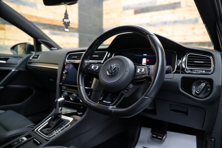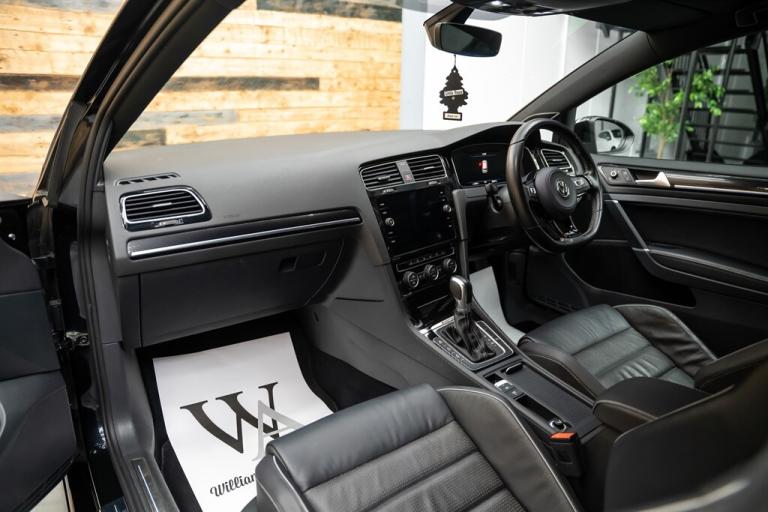Williams Automotive Ltd are proud to bring to market this stunning 2017 Volkswagen Golf R DSG MK7.5 Finished in the lovely Deep Pearl Black with a contrasting Black leather sports interior. Coming in with low owners, low mileage, huge spec and a full extensive service history from main dealer and respected specialists. Just had a Full Major Service, Spark Plugs Replacement, Air Filter Replacement, Brake Fluid Service, DSG Service, Haldex Service, X4 Michelin PS5 Tyres & Comprehensive Vehicle Health Check costing in excess of £1,500 with invoices present! Supplied with all supporting documentation, both keys and manuals. This beautiful Golf R not only looks great but it also has a brilliant factory specification and some subtle modifications making it stand out from the rest, some include the sought after Heated Black Vienna Leather R Embossed Sports Seats, Dynaudio Speakers (Rare Option), Deep Pearl Black Paintwork (Looks Phenomenal), 18"" Cadiz Wheels wrapped in like new Michelin PS5 Tyres, Adaptive Cruise Control with Brake Function, Virtual Cockpit, 7 Speed DSG, Auto Hold, Auto LED Headlights with Daytime Running Lights, Auto Wipers, Res Delete (Sounds Immense), Maxton Rear Spoiler, Navigation, Bluetooth, Apple CarPlay, USB Input, Lap Timer, 3 Door, Digital Dual Zone Climate Control, Blue Ambient Lighting, 4 Motion, Piano Black Trim, R Kick Plates, Driving Modes - ECO - NORMAL - RACE - INDIVIDUAL and so much more! This Golf R is well known to us, having been previously supplied by Williams Automotive Ltd and it’s a pleasure to have it return to our showroom. It has clearly been owned and maintained with care, reflected in its excellent condition, impressive service history and how it drives. Comes with a 6 month premium warranty from Autoguard as standard, with the option to extend for additional peace of mind. Finance options available and part exchange welcome. Viewings are strictly by appointment to ensure a personalised and unhurried experience.