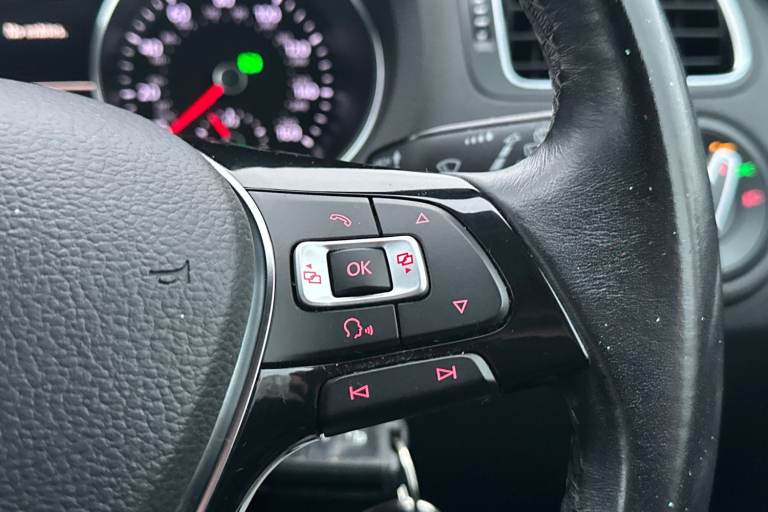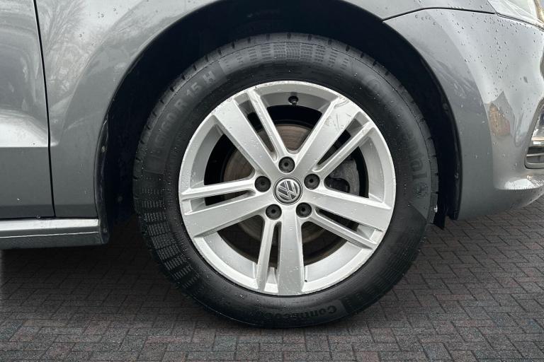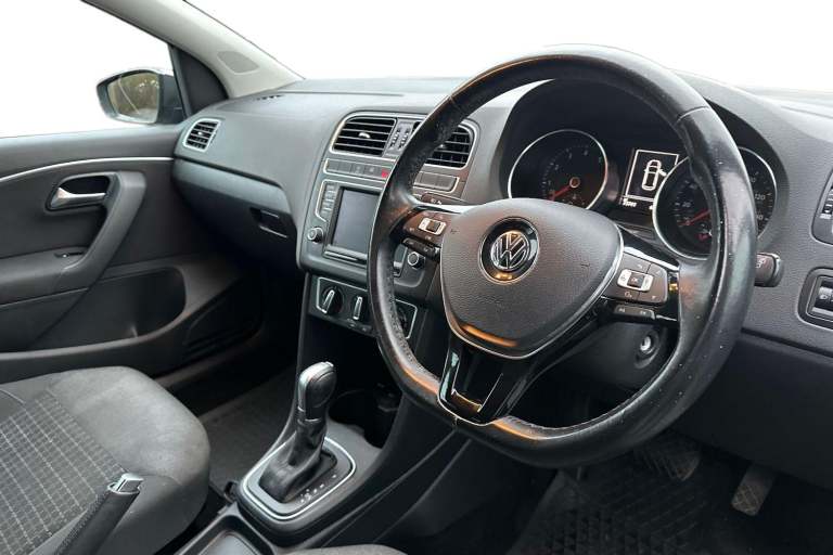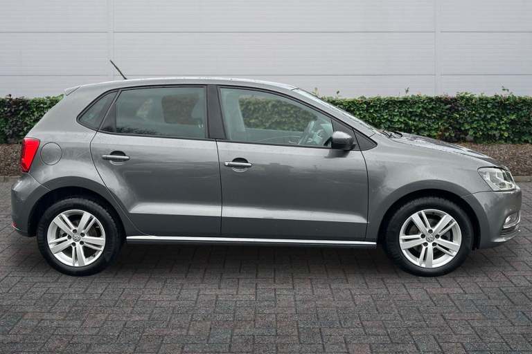 Available from 07/02/2026. Volkswagen Polo Hatchback 1.2 TSI Match Edition 5dr DSG in Metallic - Nimbus grey. Specification Includes Service interval indicator,Multi function display,PAS - speed related,Multifunction computer,Bluetooth Telephone preparation,Ultrasonic front and rear optical and audible parking sensors,Warning buzzer and light for front seatbelts unfastened,Driver alert system,App-Connect,Composition media system with radio, glovebox mounted CD, colour touch screen, SD card, aux-in, USB, multimedia interface,DAB Digital radio,6 speakers,Heated rear window with auto timer,Body colour door handles,Body colour bumpers,Body coloured side sills,Body colour door mirrors,Electric folding door mirrors,Electric front windows,Rear electric windows,Front wash/wipe with interval delay,Heat insulated tinted glass 65% light absorbing from B pillar back,Rear windscreen washer and wiper with interval delay,Electric operated/heated door mirrors,Chrome trimmed front air intake surrounds,Black grille with chrome surround,Front fog lights with static cornering function,Matt chrome gear lever gaiter surround,Storage compartment in rear doors,Multifunction leather steering wheel with leather gear knob/handbrake grip,3 rear head restraints,Storage compartment in front doors,Front passenger seat height adjust,2 bag hooks in luggage compartment,Isofix Preparation 2 Rear child seats,Dust/pollen filter,12V power socket in centre console,Illuminated vanity mirror,Sunglasses holder,60/40 split folding rear seat,2 cupholders,Driver seat height adjust,Height/reach adjustable steering column,Front seat backrest storage nets,Chrome interior door handles,Driver and passenger sunvisors,Luggage compartment cover, removable,Variable boot floor,Front/rear reading lights,Interior light with delay,Glovebox,4 grab handles,Front door pockets,Luggage compartment lighting,3 spoke steering wheel,Centre console storage,Light and sight pack - Polo,Automatic post collision braking,ESP with EDL + ASR,Hill hold control,ESC - Electronic Stability Control + traction control,Driver/Passenger whiplash optimised head restraints,3x3 point rear seatbelts,Hydraulic Brake Assist (HBA),ABS,Driver/front passenger airbag,Tyre pressure monitoring system,3 point height adj front seatbelts + pretensioners,Electronic engine immobiliser,Alarm with remote central locking and interior protection,Air vents in Matt chrome,Matt chrome interior trim,15in steel spare wheel,Listers Approved,Comprehensive
