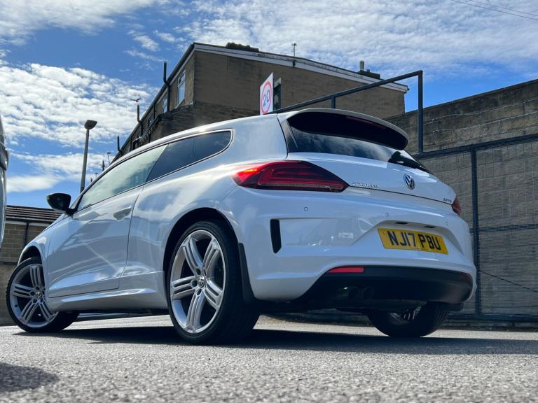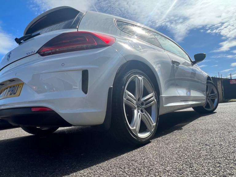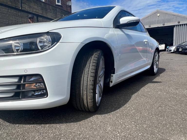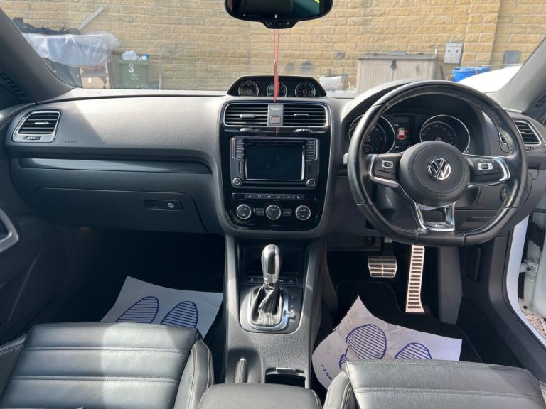 VOLKSWAGEN SCIROCCO 2.0 TDi BlueMotion Tech R-Line 3dr DSG Comes with 2 x keys full service history in stunning white has had professional sound system installed full heated leather full r line spec fully loaded will come with 12 months warranty and full 12 months mot