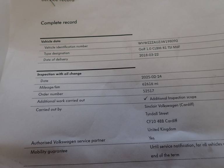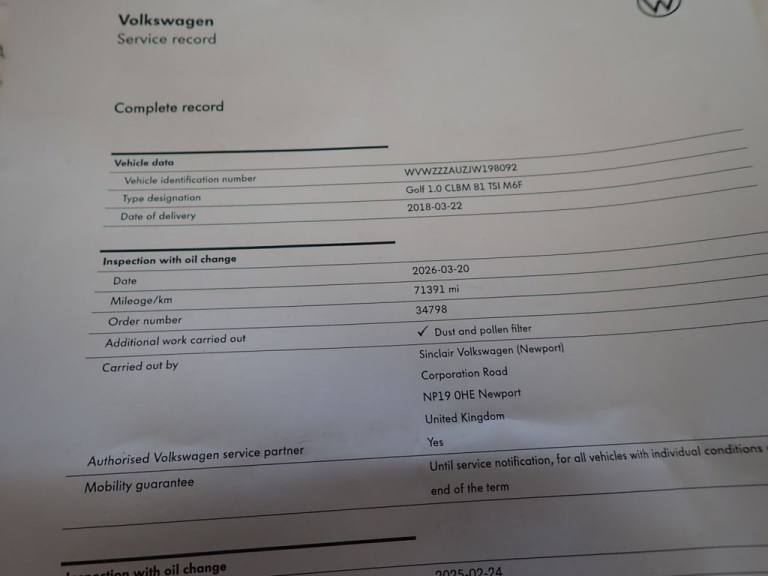 Posting for 6+ years2018 18 VOLKSWAGEN GOLF 1.0 TSI SE HATCHBACK 5DR PETROL MANUAL EURO 6 (S/S) (110