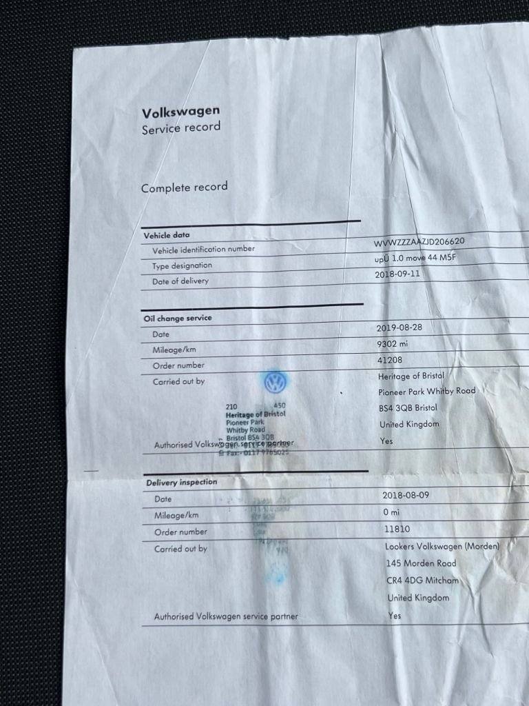 Posting for 12+ years2018 68 VOLKSWAGEN UP! 1.0 MOVE UP! HATCHBACK 5DR PETROL MANUAL EURO 6 (S/S) (60