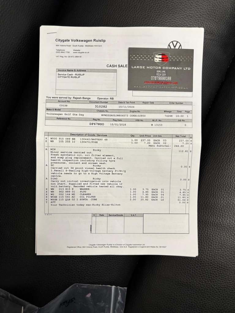 2018 Volkswagen Golf 1.4 TSI 8.7kWh GTE DSG Euro 6 (s/s) 5dr HATCHBACK Petrol/Electric Hybrid Aut...